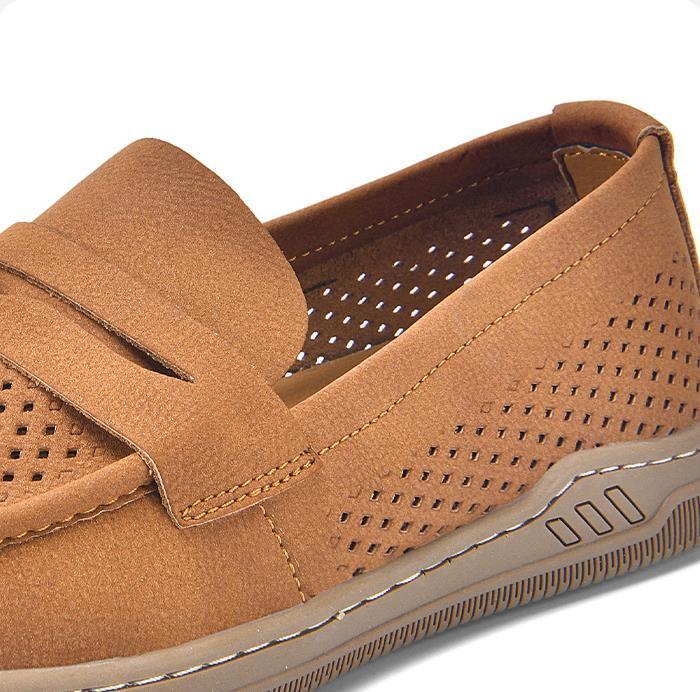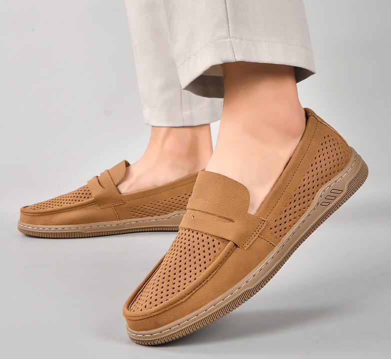 ローファー 透かし彫り スリッポン 柔らかい ドライビングシューズ カジュアル メンズ・新品 夏靴【26801-1】カーキ 24.0cm