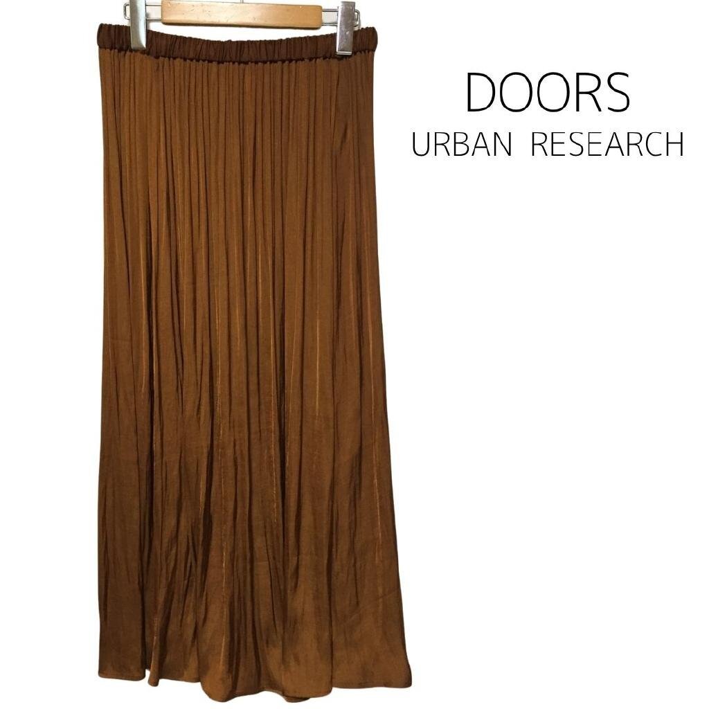 【送料込】 URBAN RESEARCH DOORS アーバンリサーチドアーズ スカート ブラウン 茶 ランダムプリ-ツ ウエスト紐・ゴム入り sizeOne/970882