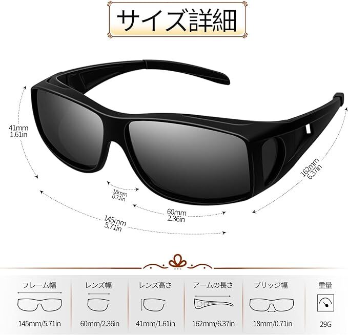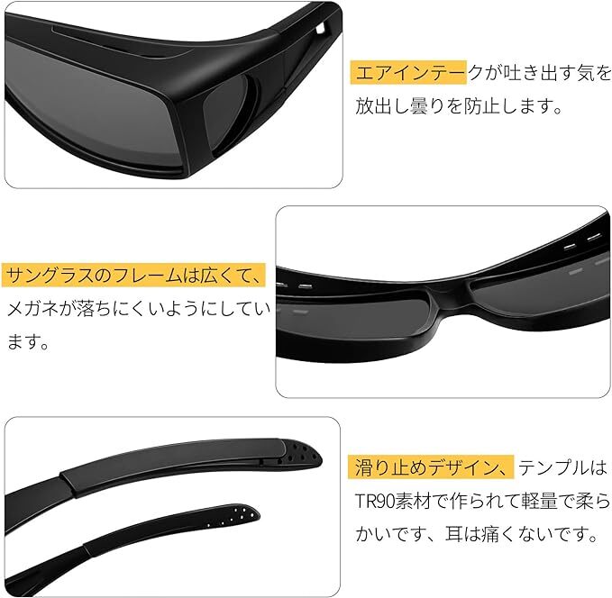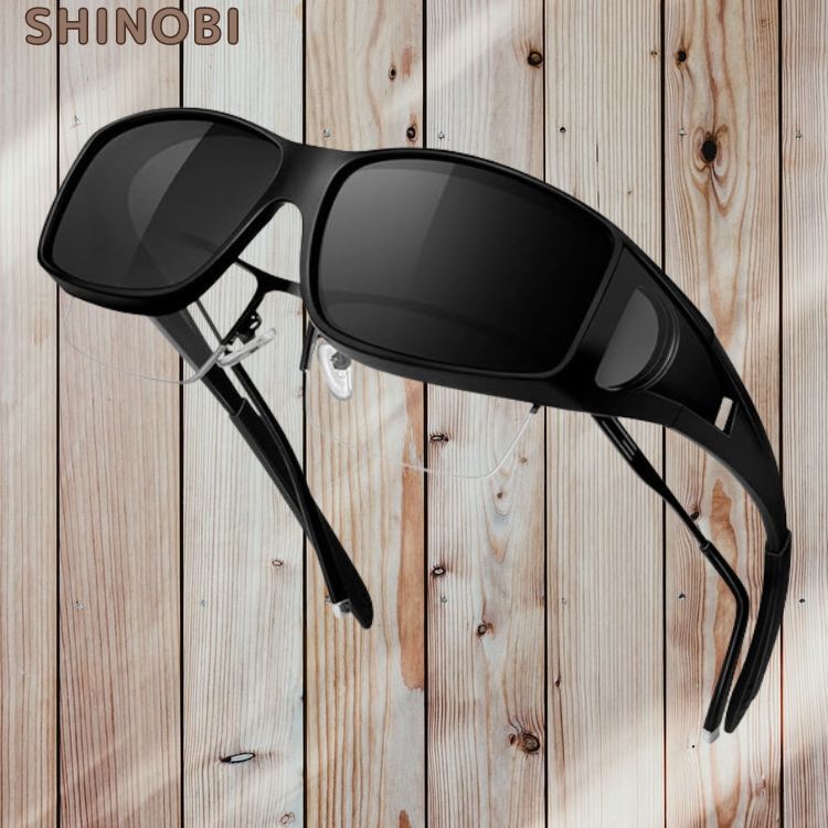 オーバーサングラス メガネの上から掛けられる 偏光 UV400 紫外線カット 運転用 釣り スポーツ メンズ レディース ブラック