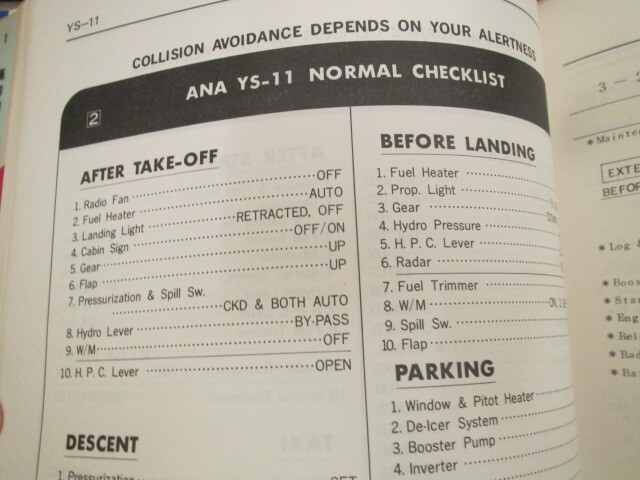 実使用品 ANA 全日空 YS-11 飛行機運用規定