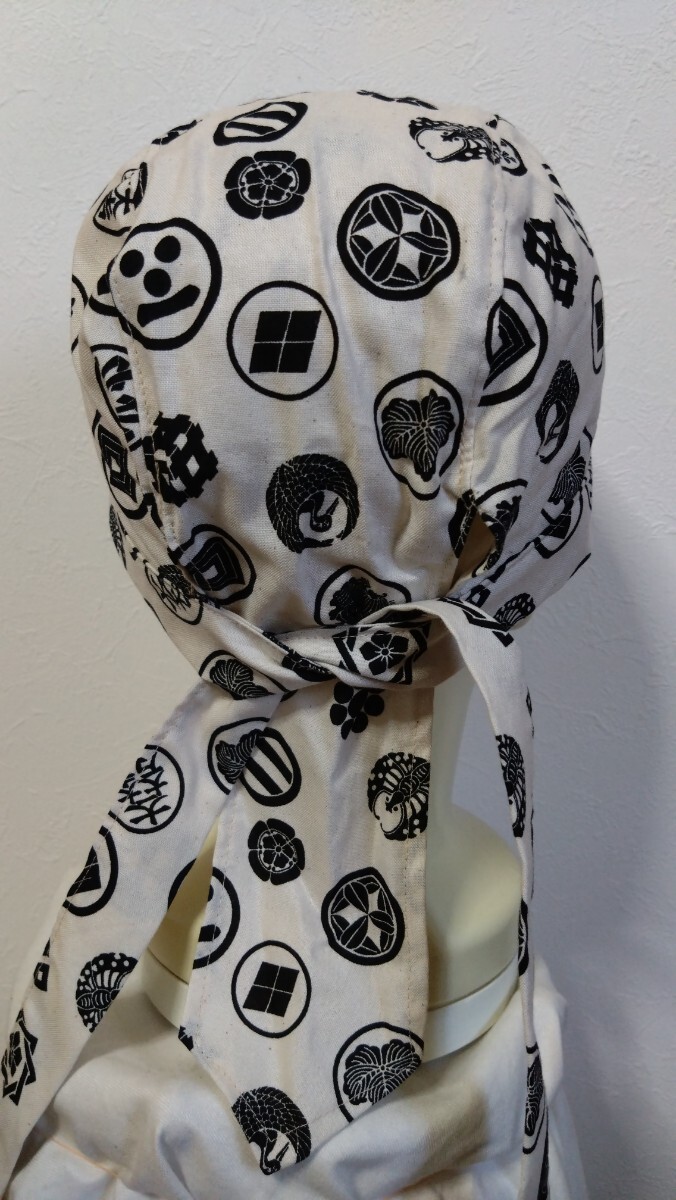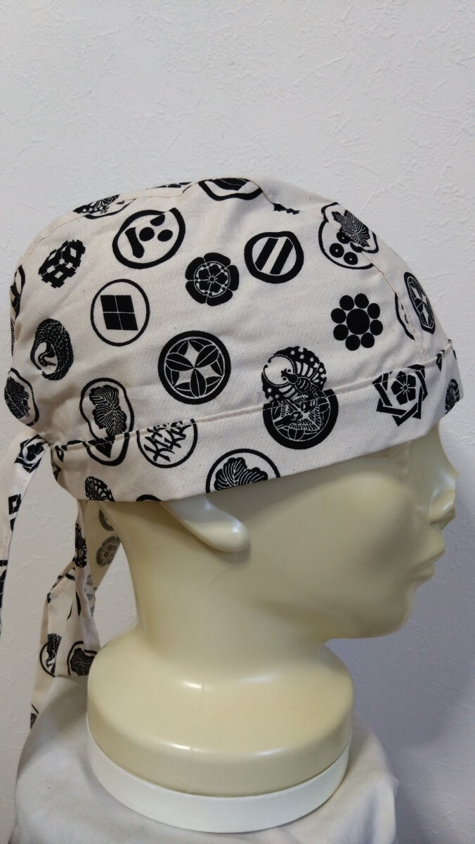 ★バンダナキャップ★ハンドメイド 和柄 家紋 古典 生成り