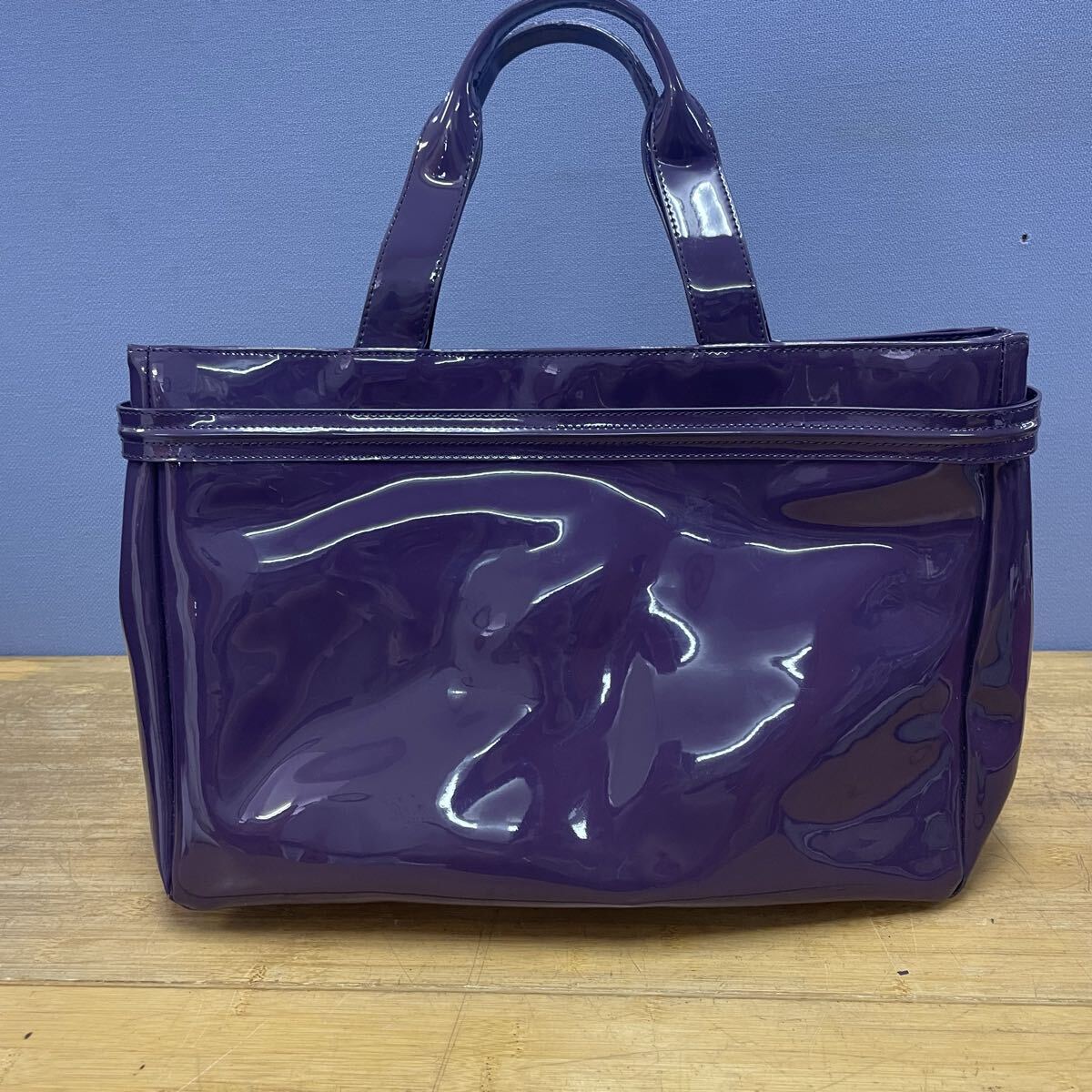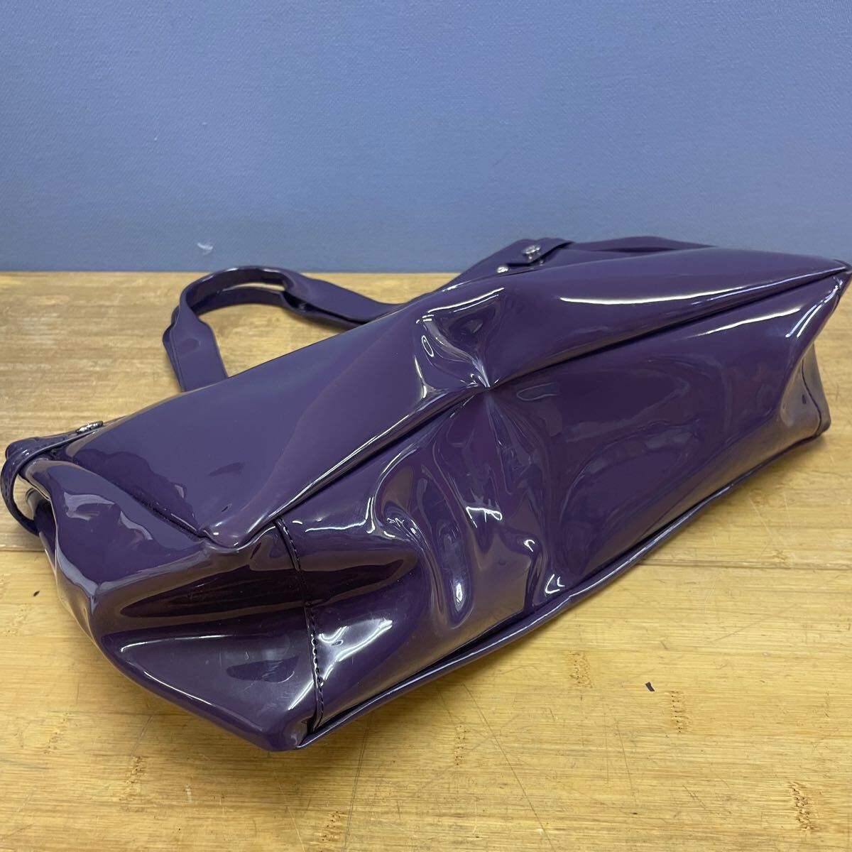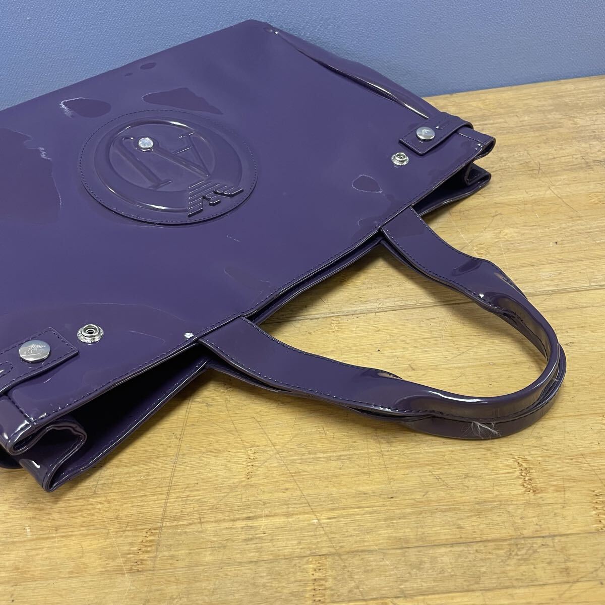 【中古】ARMANI JEANS(アルマーニジーンズ) エナメルトートバッグ 幅約40×高さ約28×マチ約10cm 保存袋付 長期保管品◆D7-036