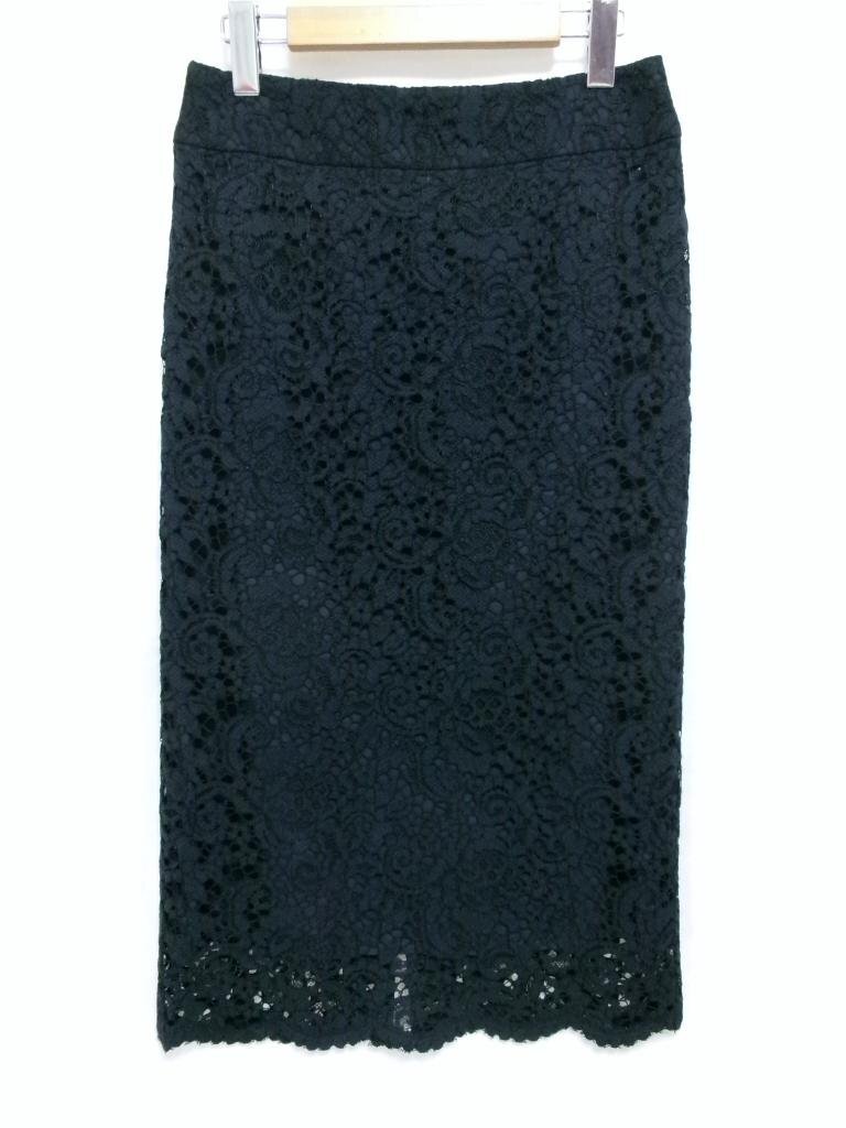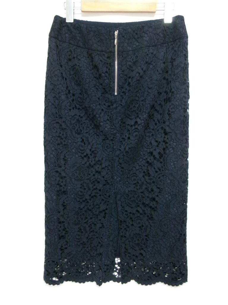 【送料込】 IENA イエナ スカート ネイビー 紺 綿混 カットワークレースタイトスカート 後ろスリット スカラップヘム size40 L/970904