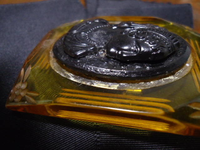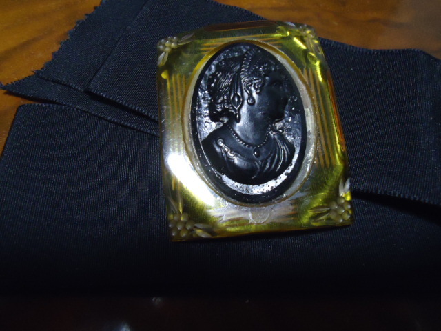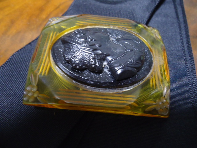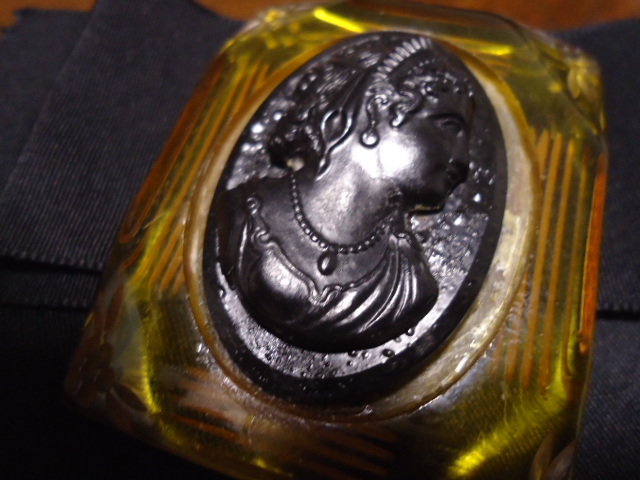 バイヤーの友人が10年くらい前にフランスの蚤の市 クリニャンクールで購入したカメオのブローチです ブラックのカメオが珍しく一目で気に入って購入したそうです 結構高かったようですが金額は忘れたようです サイズ約6×4,5 カメオの周りのデザインもとても凝っていて素敵です 大き目なのでコートやジャケット ニットにつけても映えます