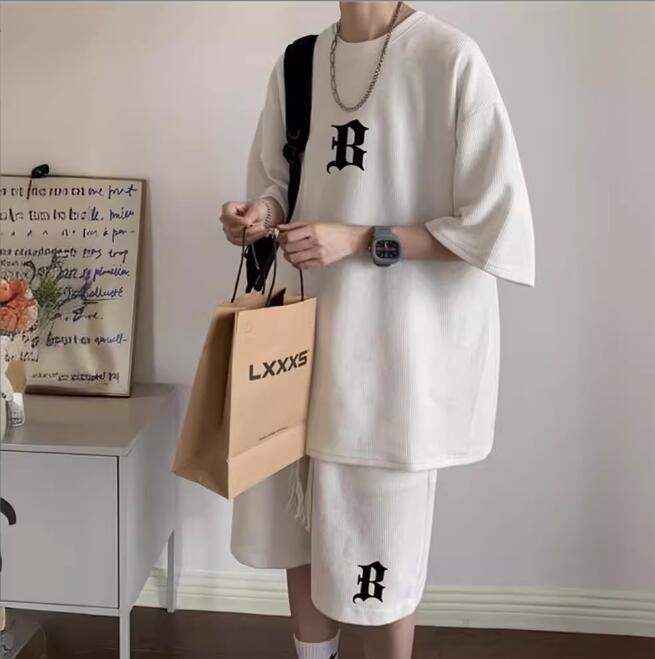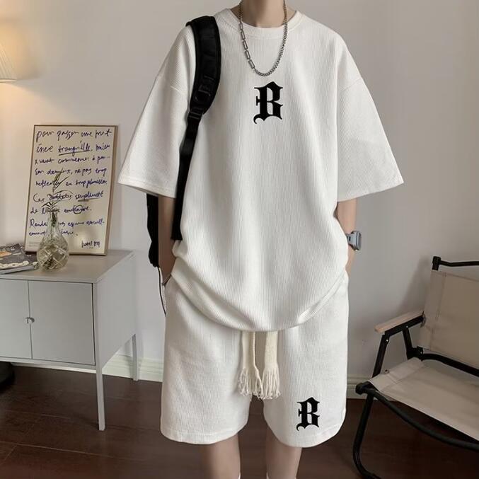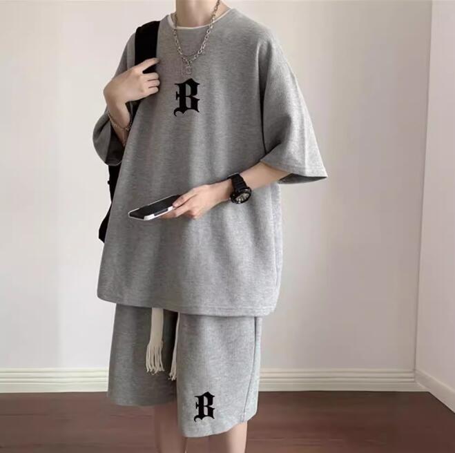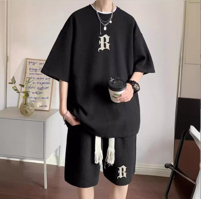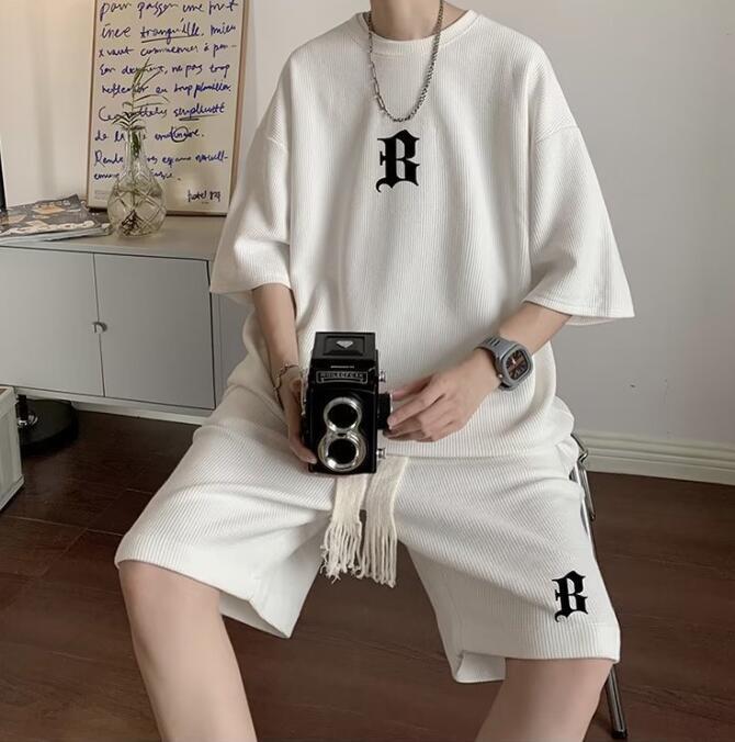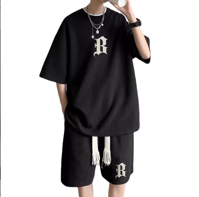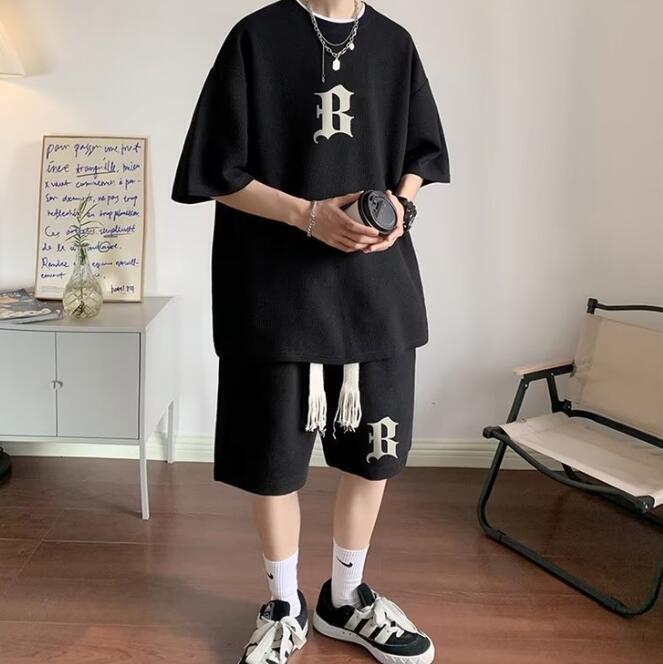 人気品上下セット メンズ セットアップ tシャツ+短パン 2点セット 大きいサイズ 英文字 半袖 夏 ゆったり カジュアル (3色S-5XL)