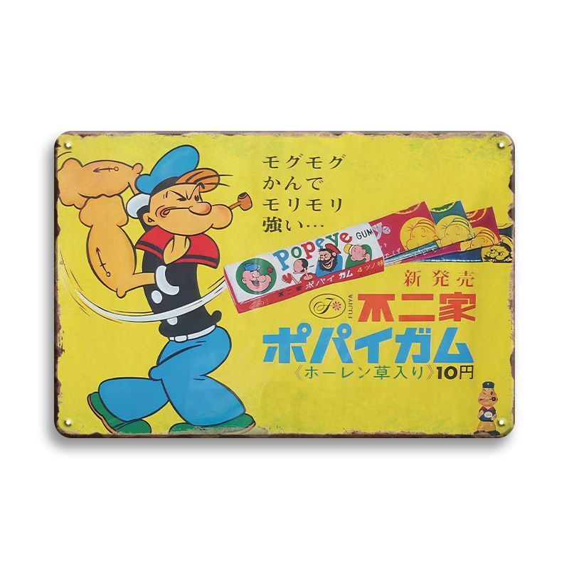 昭和レトロな「ポパイ ガム」広告デザインのブリキ看板です。
