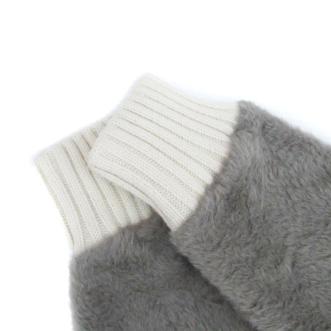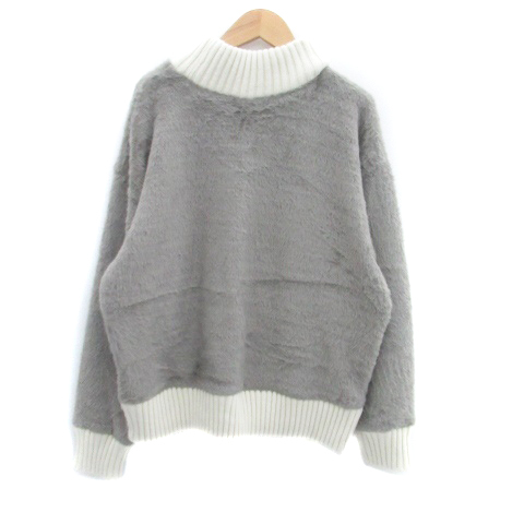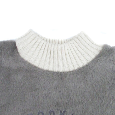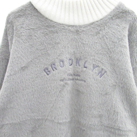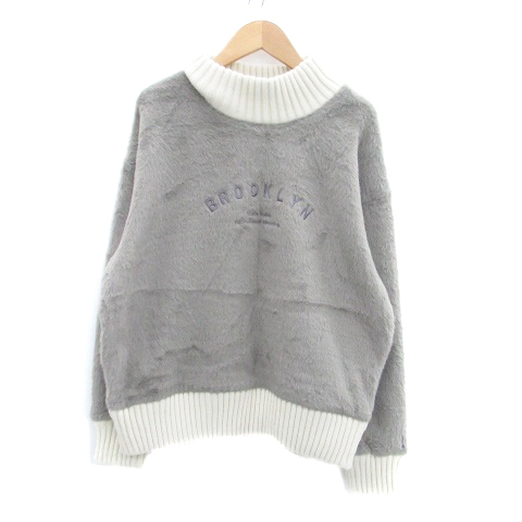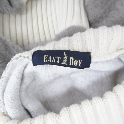 イーストボーイ EAST BOY トレーナー ハイネック 長袖 刺繍 フェイクファー F グレー オフホワイト /HO38 レディース