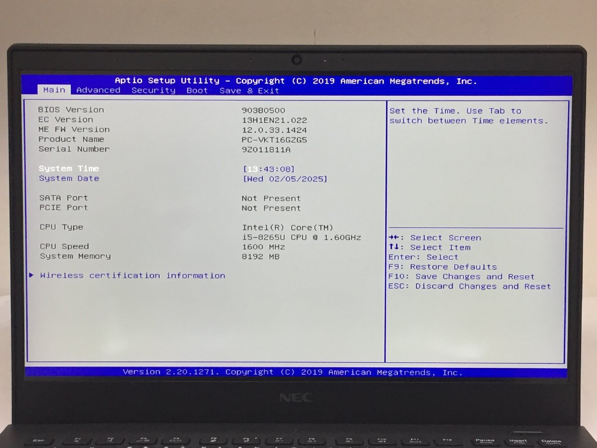 ジャンク/ NEC PC-VKT16GZG5 Intel Core i5-8265U メモリ8.19GB ストレージ無し 【K08222】