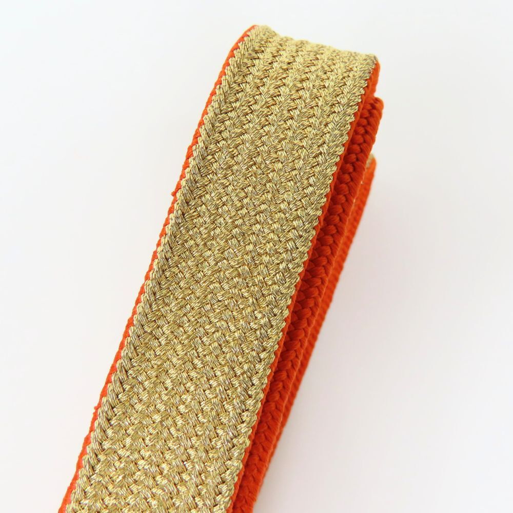 中古 帯締め 正絹 ゴールド オレンジ 平組 フォーマル 小物 和装 呉服 和服 きもの レディース 女性