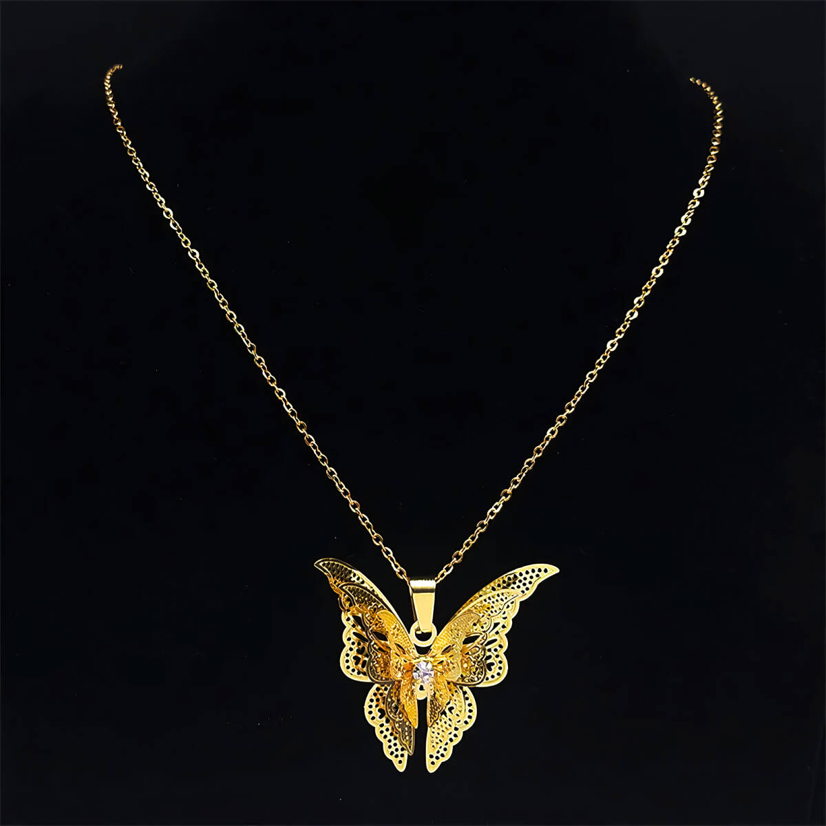 こちら綺麗な羽に透かしが入った蝶々のダイヤモンドゴールドネックレスです。