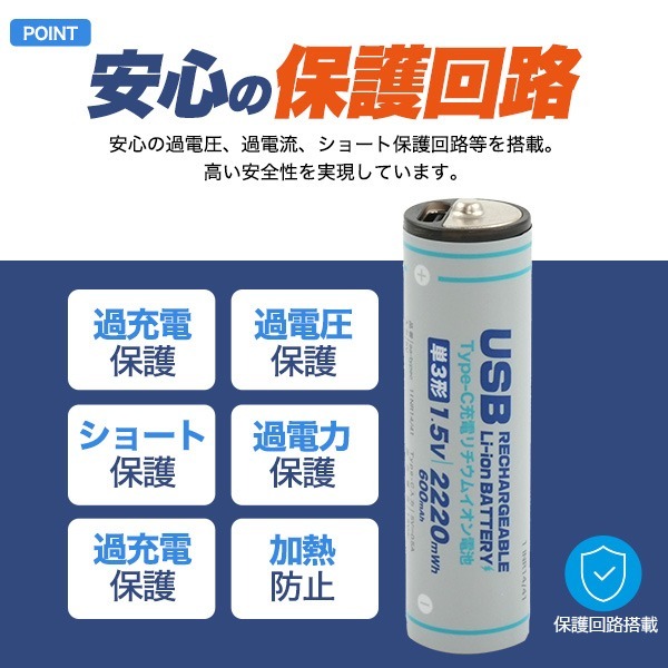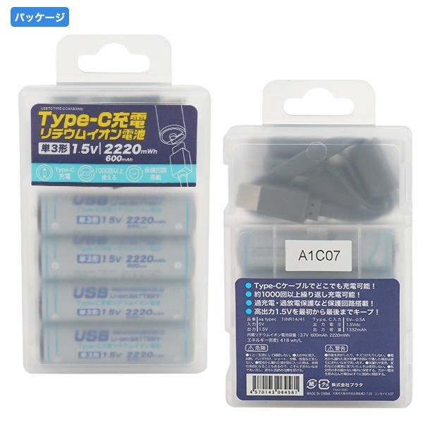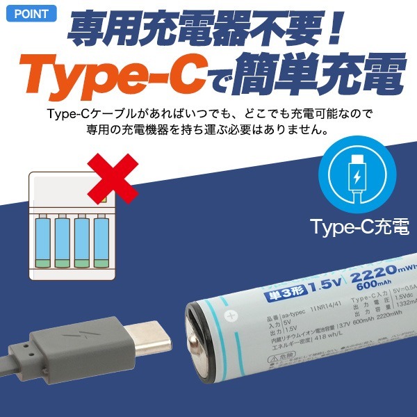 Type-C充電リチウムイオン電池(単3形×4本セット)