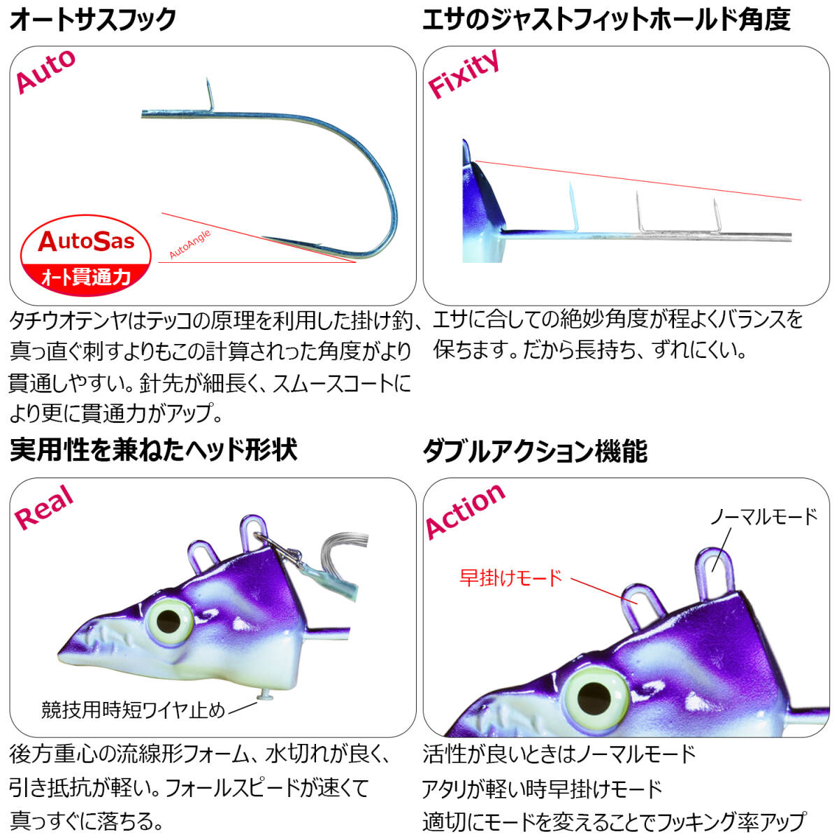 タチウオテンヤ 40号 ガツガツドラゴン シングルフック 4個選び 太刀魚 ELPIS