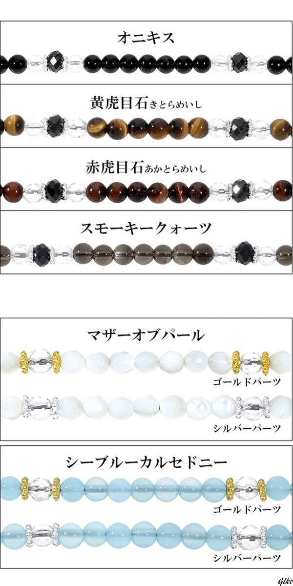 ・素材:天然石(オニキス、ブルーカルセドニー)、平カット水晶、ブラックスピネル、金属ワイヤー、メタルパーツ