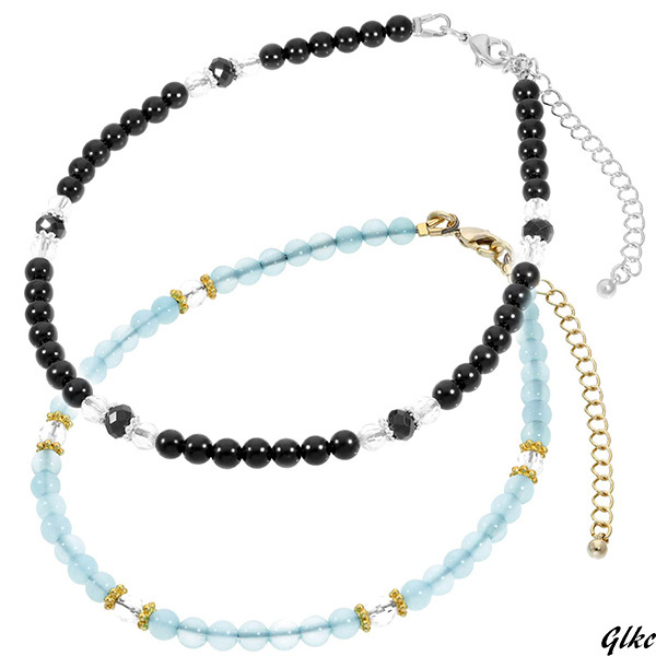 天然石のオニキスとシーブルーカルセドニーを組み合わせたペアアンクレットセットです。