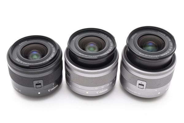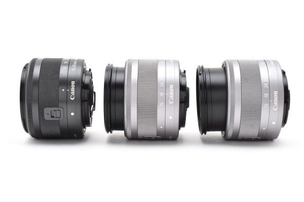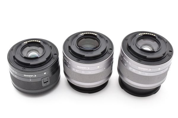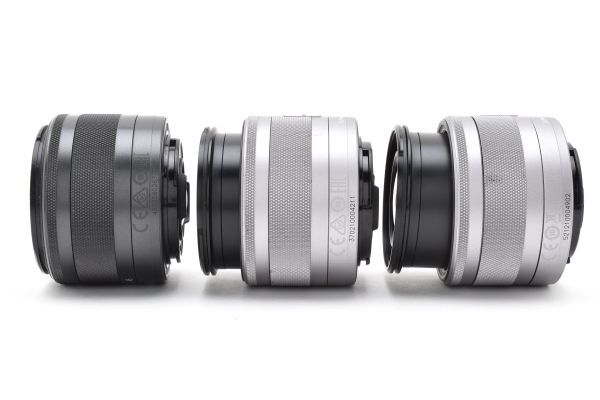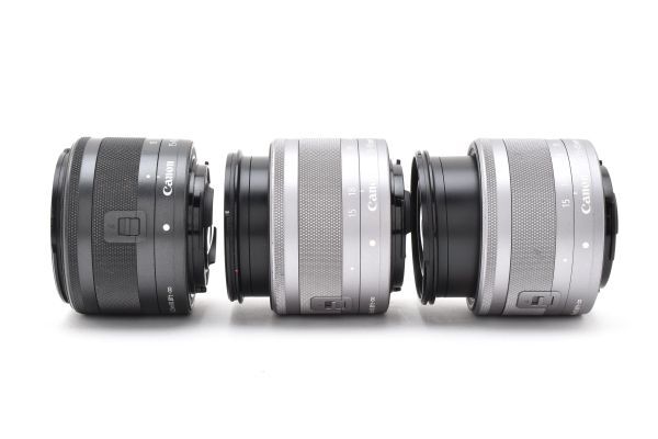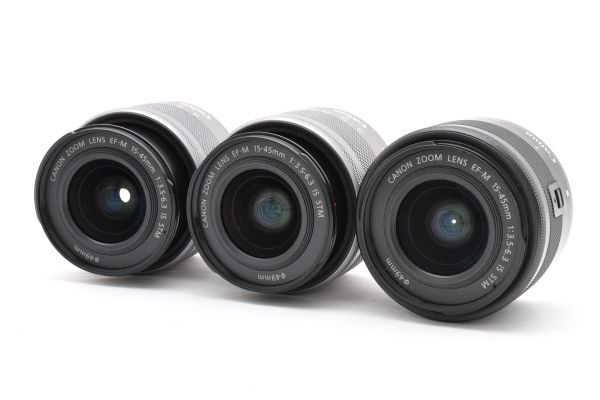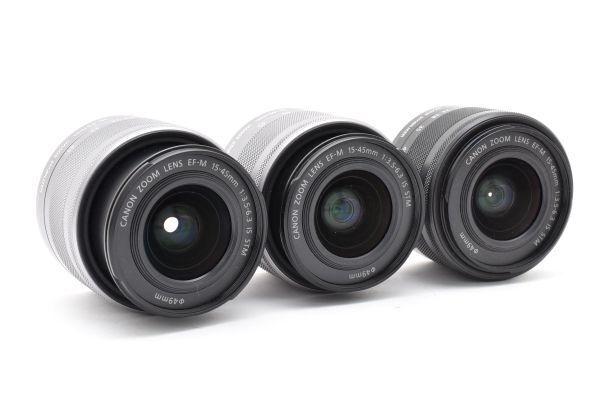 Canon EF-M 15-45mm F3.5-6.3 IS STM シルバー 2本、Canon EF-M 15-45mm F3.5-6.3 IS STM ブラック 1本(全てレンズ本体のみでレンズ前後キャップなし)