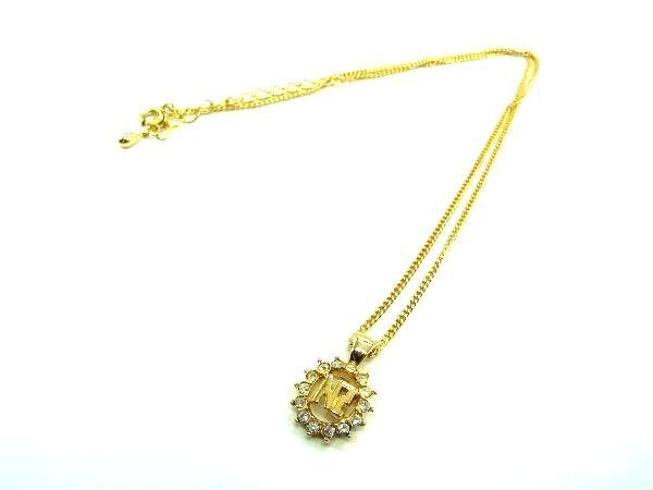 ■美品■ NINA RICCI ニナリッチ ラインストーン ロゴモチーフ ネックレス ペンダント アクセサリー レディース ゴールド系 DE0433