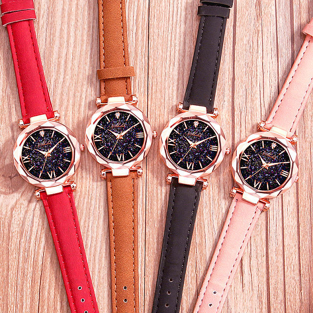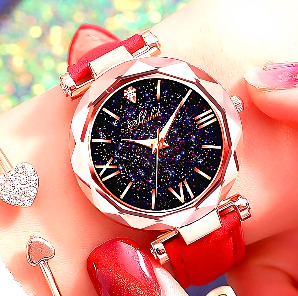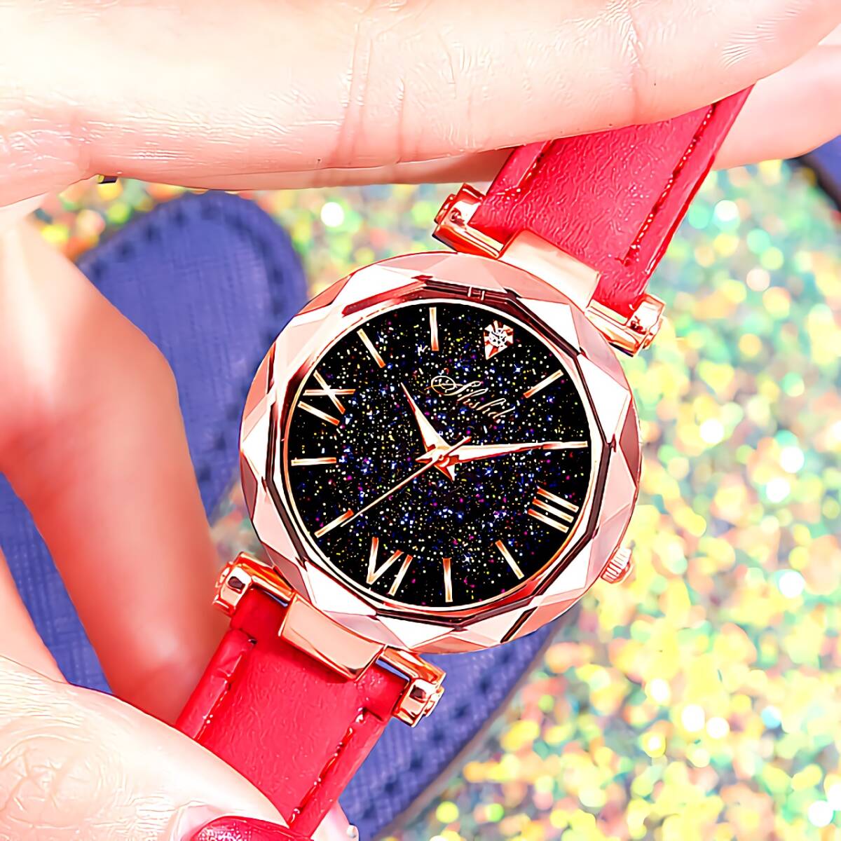 新品1円~★送料無料★虹色の銀河 満天の星空ダイヤモンドレッド天球K18GFゴールドウォッチ腕時計 誕生日プレゼント旅行秋祭ギフト国内発送