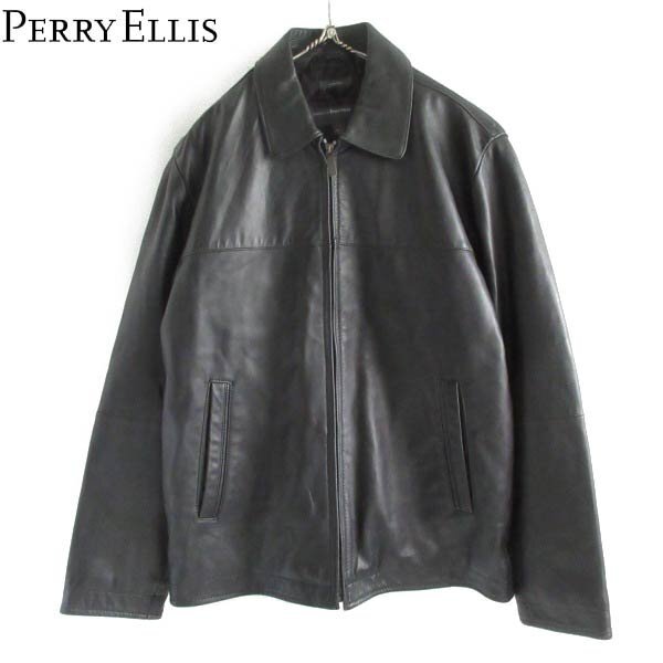 90s PERRY ELLIS PORTFOLIO Tバック ショート ラム レザー ジャケット 黒 S 短丈 ブルゾン 革ジャン ブラック ビンテージ D150-18-0030ZTW