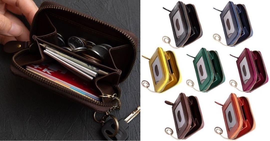 小銭約40枚、カード約6枚、お札約10枚、レシート等を十分に収納できる上、キーリングも付属しています。