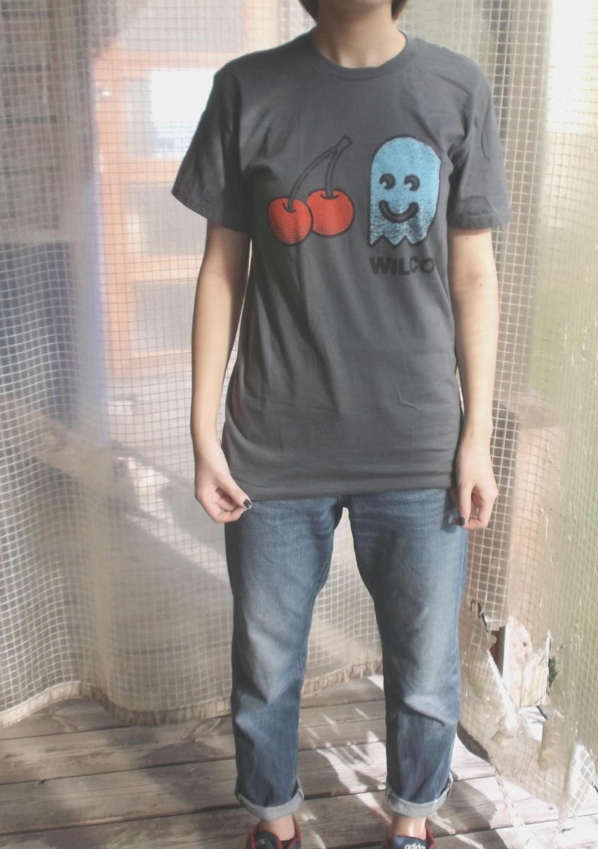 | Wilco: Cherry Ghost Tee 新品・正規品 1994年、ジェフ・トゥイーディーが中心になって結成され、オルタナティヴカントリーの括りから徐々に脱却、いまや全米を代表する実力派ロック・バンドとしての地位を確固としたWILCOのTシャツ「Cherry Ghost」です。 POPでセンスの良いデザインが多いWILCOモノですが、こちらはパックマンのゴースト&チェリーがモチーフ!! 擦れプリントでUSEDっぽい風合いです。 カラー:チャコール 新品・正規品 XLサイズ 180cm位の方~良いかと思われます。肩幅53cm、着丈76cm、身幅58cm モデル 身長162cm女性がSサイズ着用 メール便送料¥250(代引き不可・紛失補償なし) ACE CAFE LONDON、LUCKY13、THRASHER、Sailor Jerry等~アメキャラ・企業ロゴ等ライセンスTシャツ、RATFINK関連品、バンドTシャツ、等取り扱っております。 ** 他にも色々出品中です。 CWBT cwktw cwlpm IWTS | |||||||