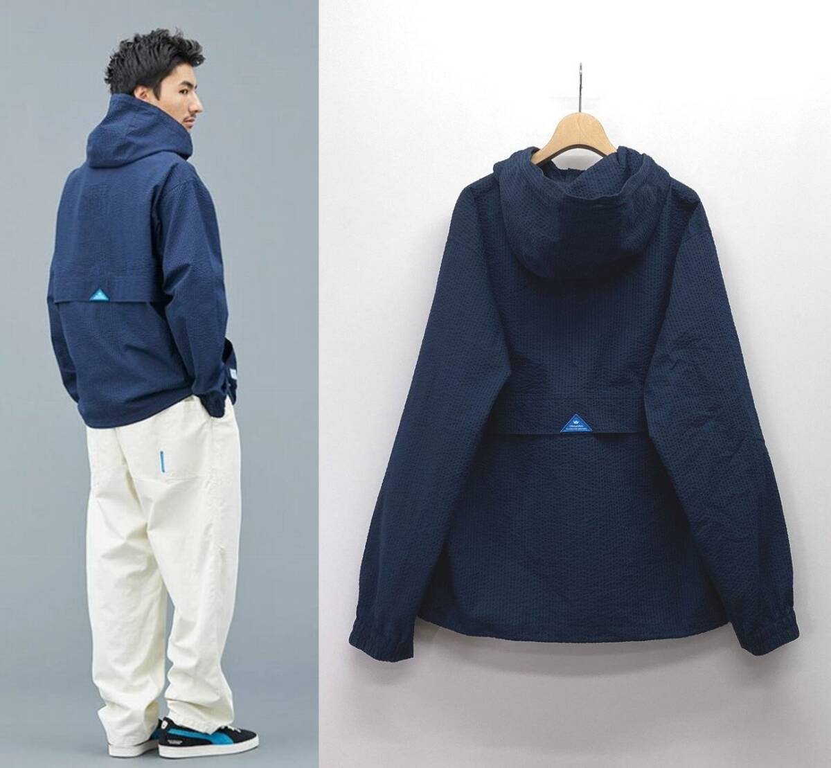 【25SS 美品】Liberaiders リベレイダース COOLMAX マウンテン パーカー M ネイビー 紺 フード シアサッカー ジャケット HA6205