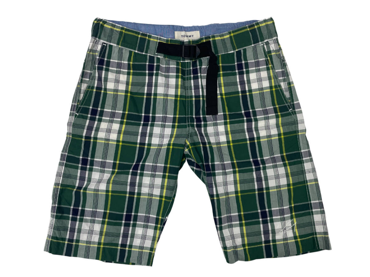 | ブランド:TOMMY HILFIGER 型 番 :21-4717309-320 カラー :ホワイト×グリーン 状 態 :USED 大人気の トミーヒルフィガー チェック柄 ハーフ パンツ です。 左足下にロゴ刺繍、バックポケットにロゴパッチが付いた トミーヒルフィガー らしい色使いのキレイな チェック柄 のパンツです。 ダメージ無くキレイな状態で、これから長く付き合える一品です。お探しの方お勧めですよ。 ■サイズ:製品表記 Sサイズ ■サイズ:実寸(平置き) ウエスト 41.0ocm (×2=約82cm) W32相当 股下 26.5cm 股上 25.0cm ワタリ 30.0cm すそ幅 23.5cm | ||