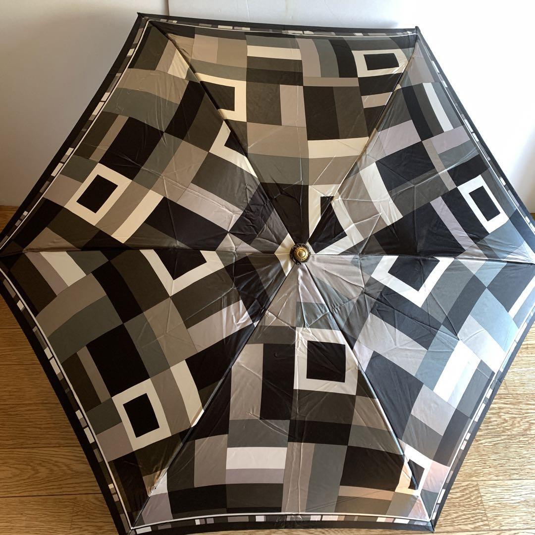 ブラックとグレーの幾何学模様の折りたたみ傘。