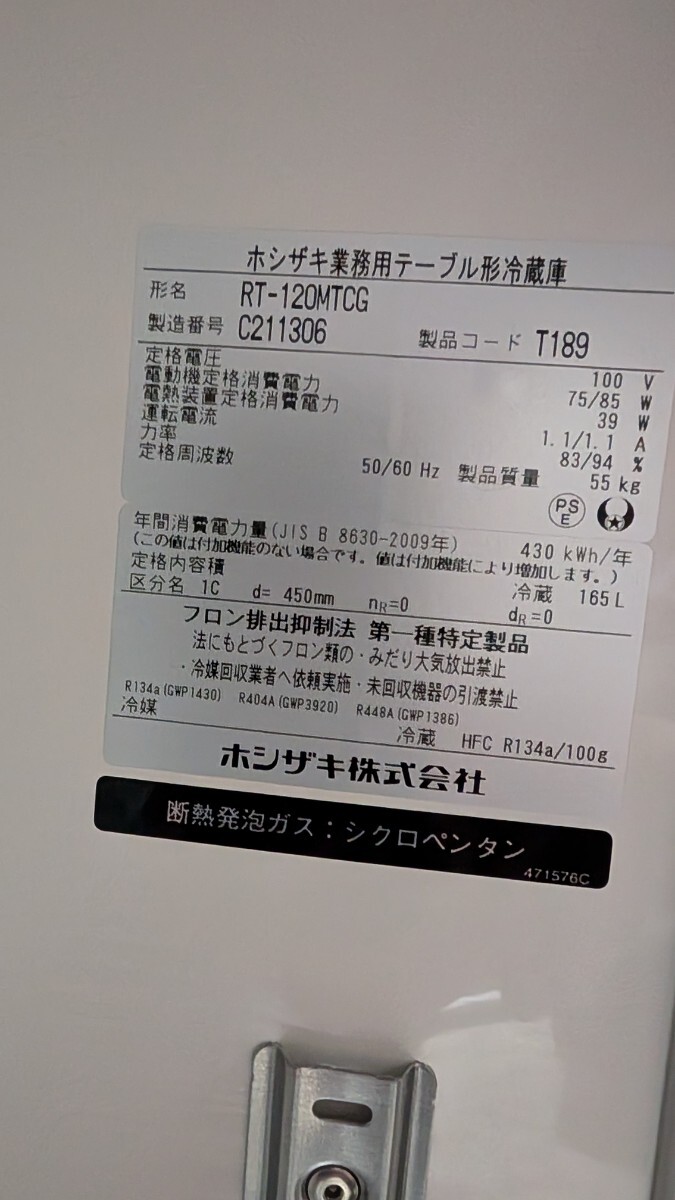 ●商品名 : ホシザキ業務用テーブル型冷蔵庫