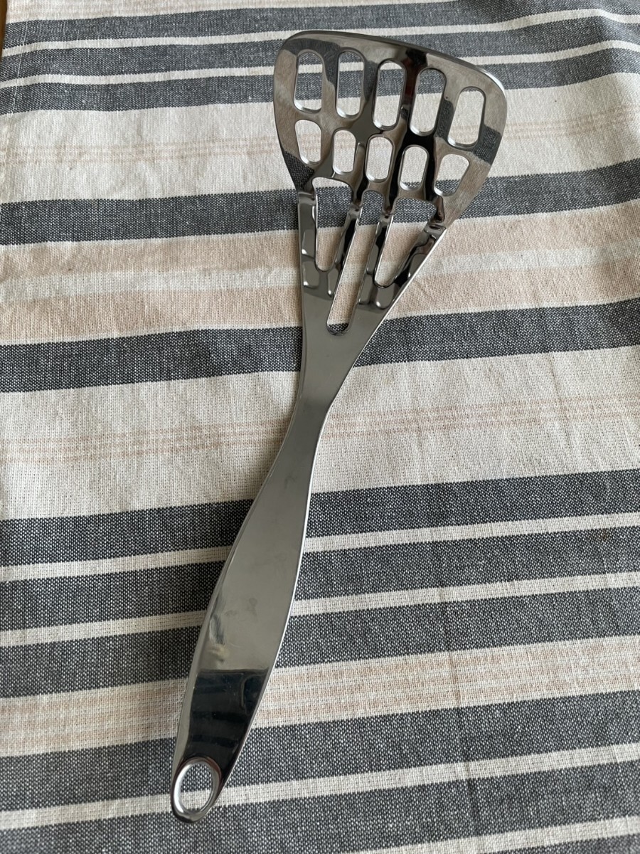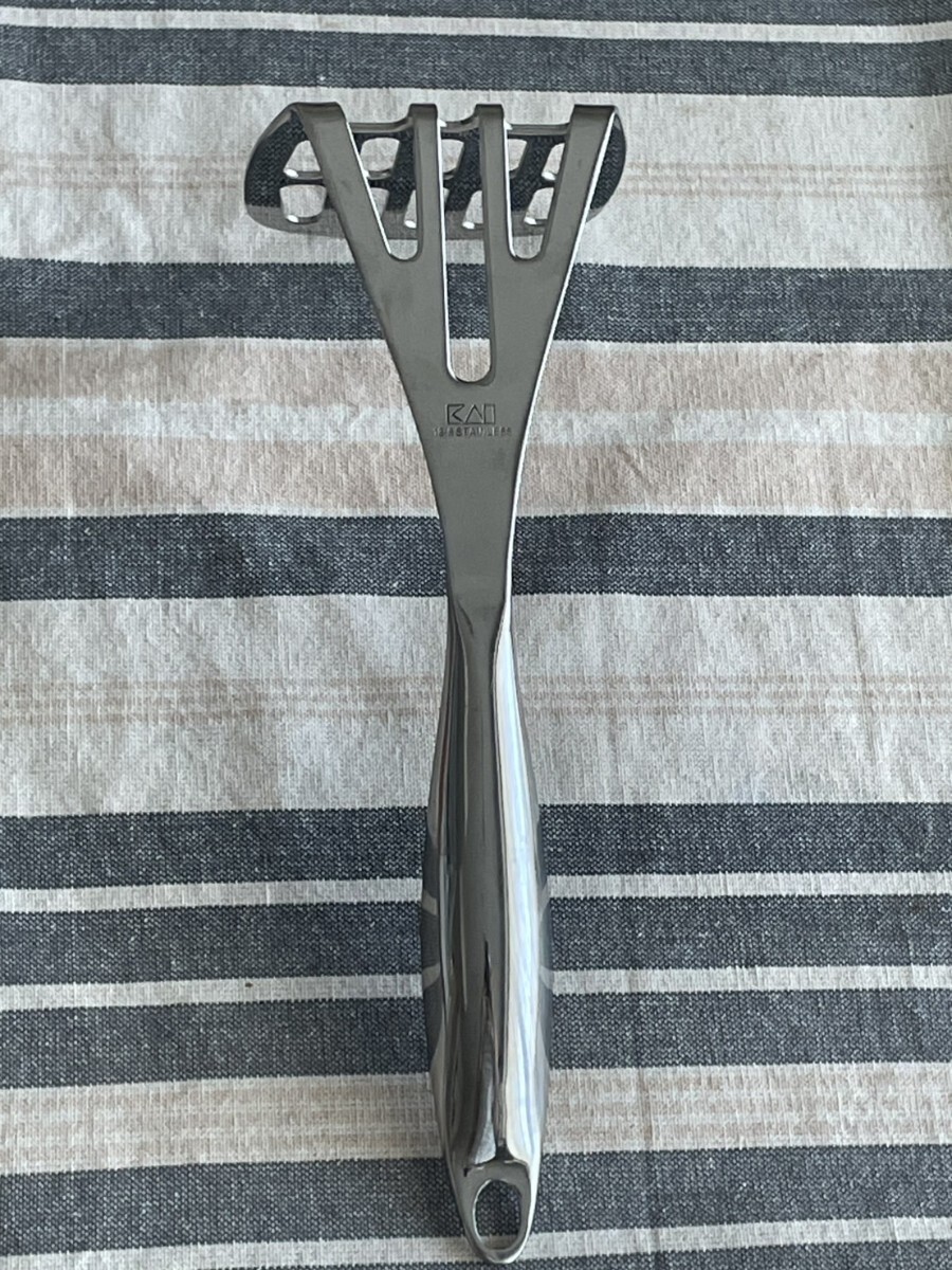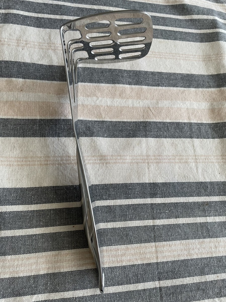 しっかりした作りの為、大量のじゃがいもや味噌の豆を潰すのにむいてる、持ち手に膨らみがあるので握りやすい