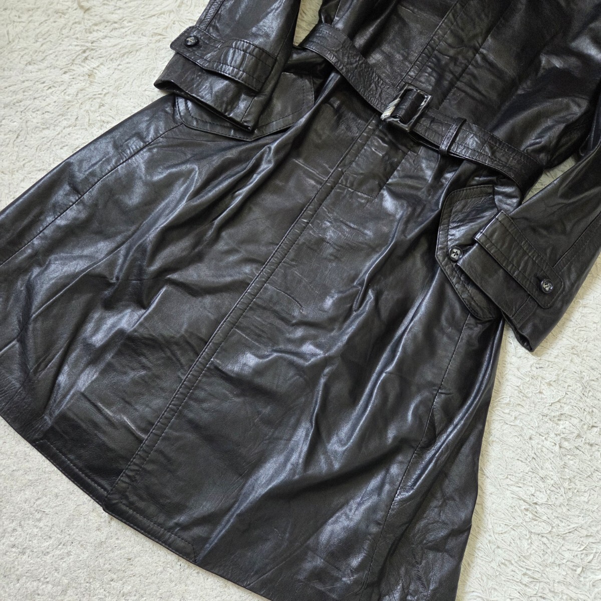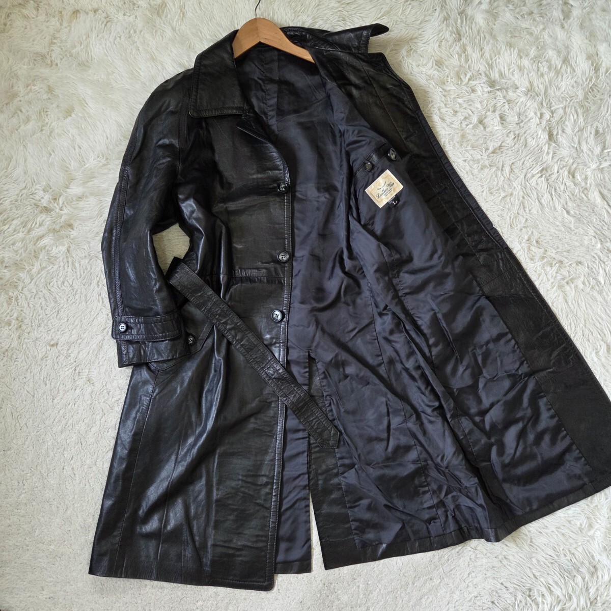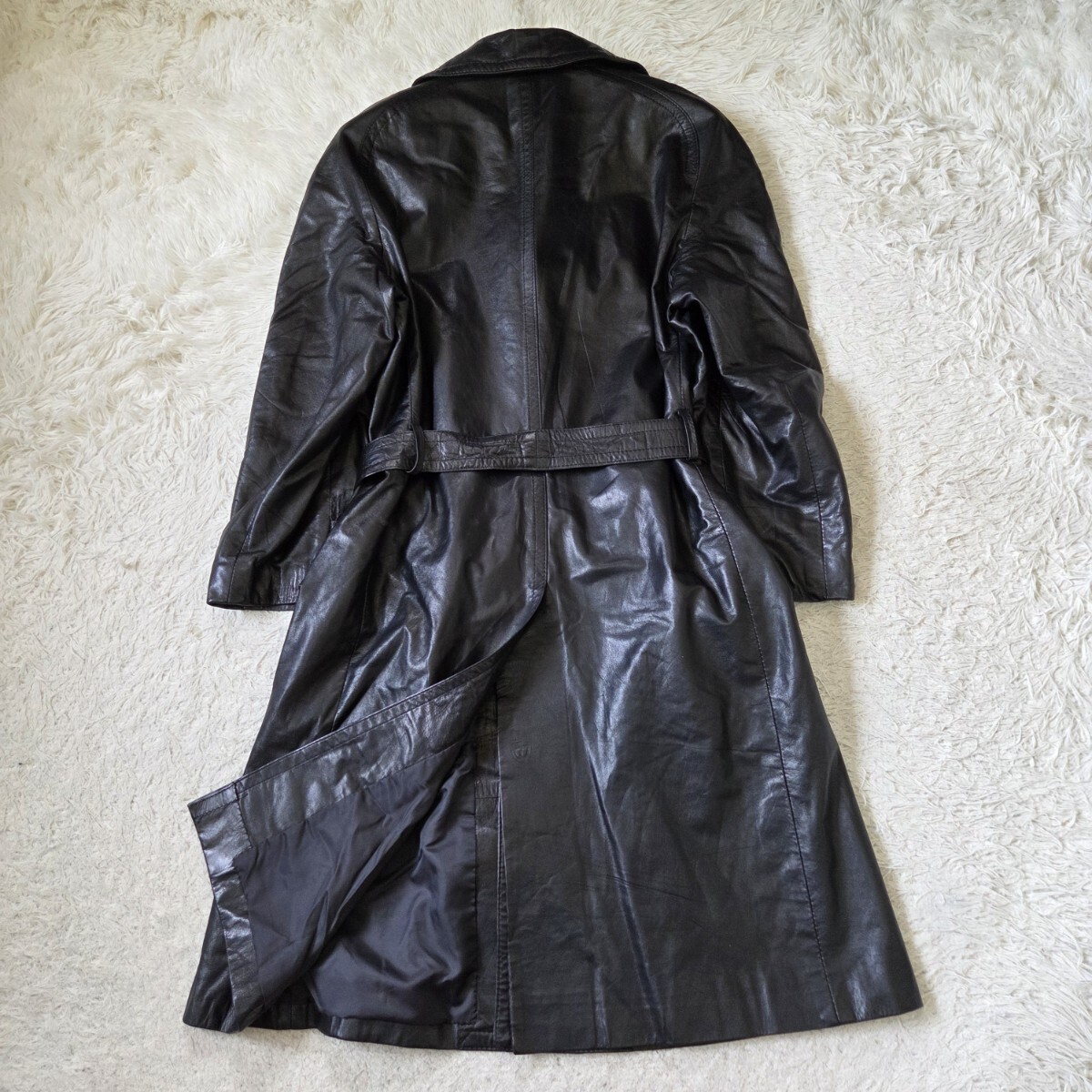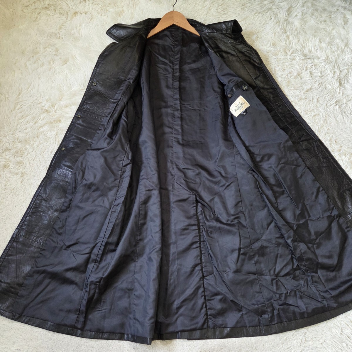 美品 Leather Wear【ラムレザー トレンチコート マキシ丈 希少サイズ L】レザーコート ロングコート ベルト ブラック 黒 羊革