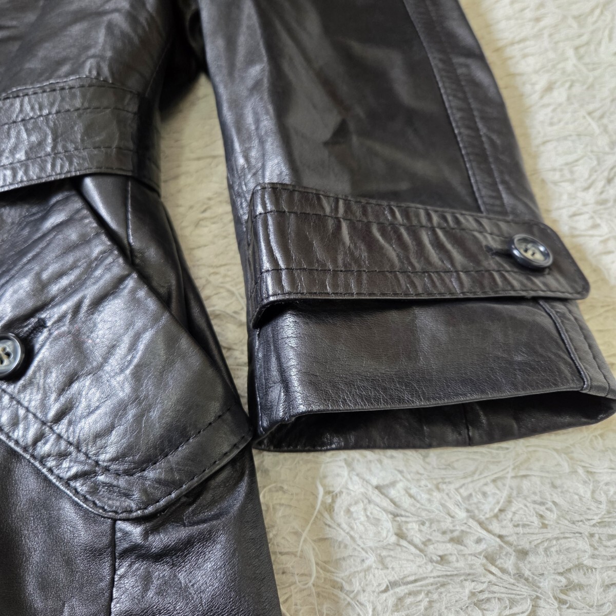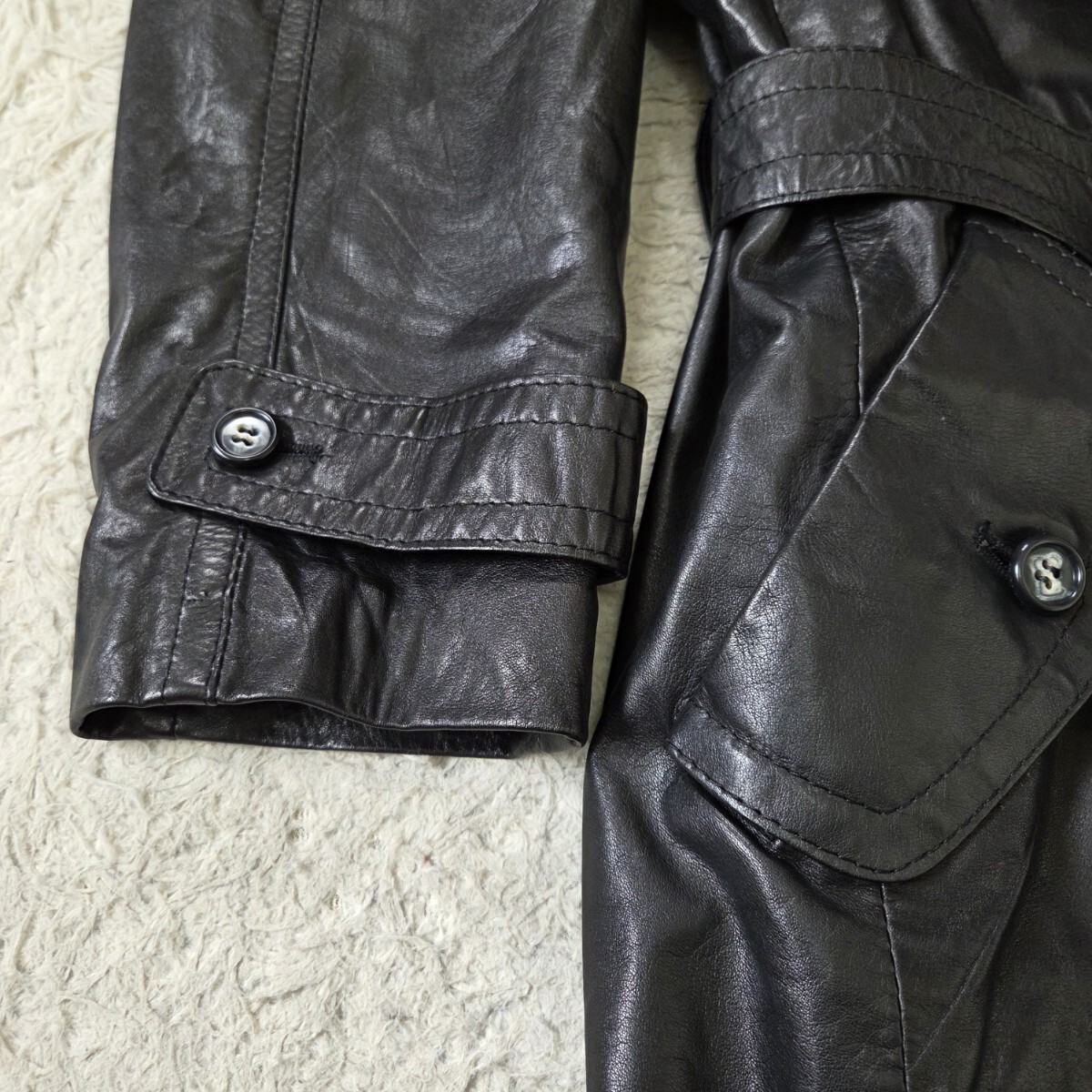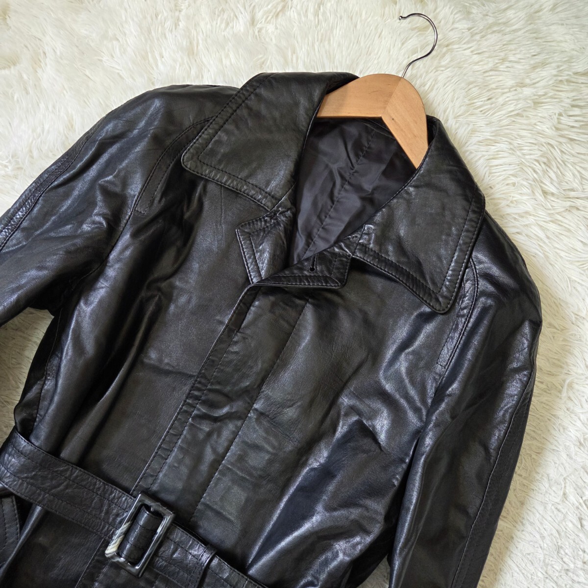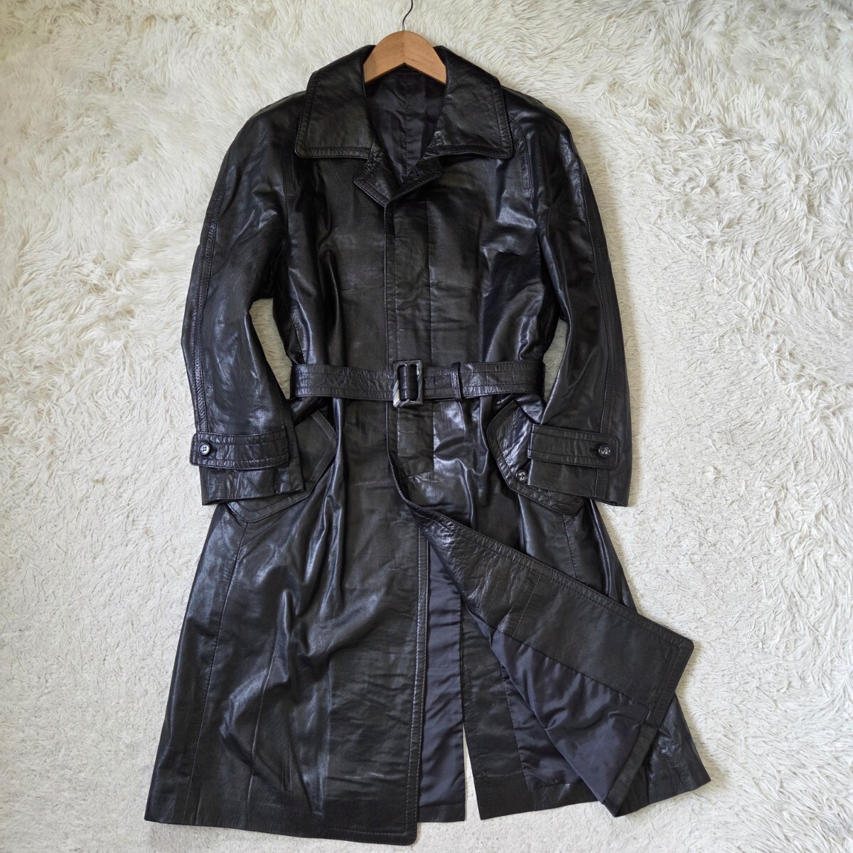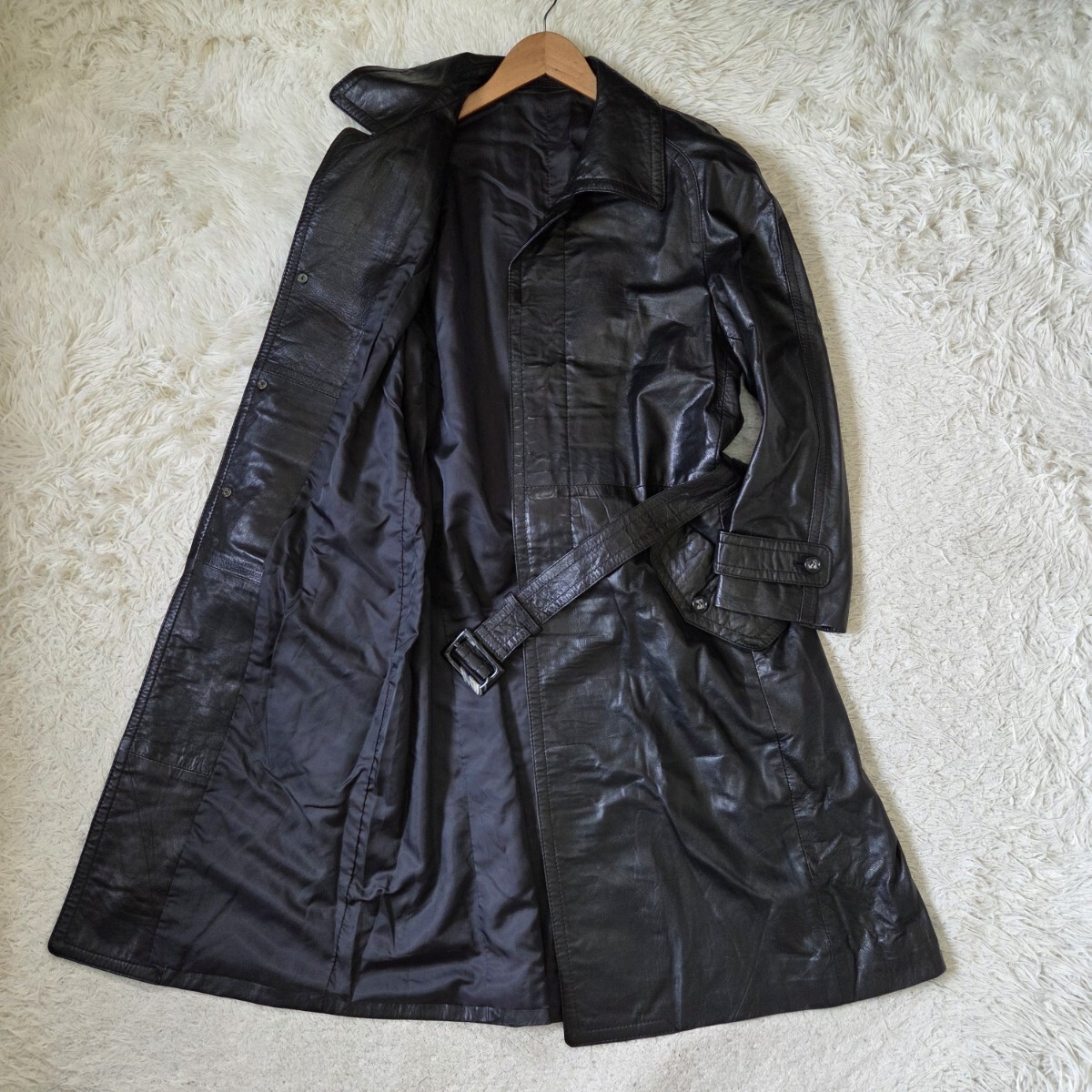 美品 Leather Wear【ラムレザー トレンチコート マキシ丈 希少サイズ L】レザーコート ロングコート ベルト ブラック 黒 羊革