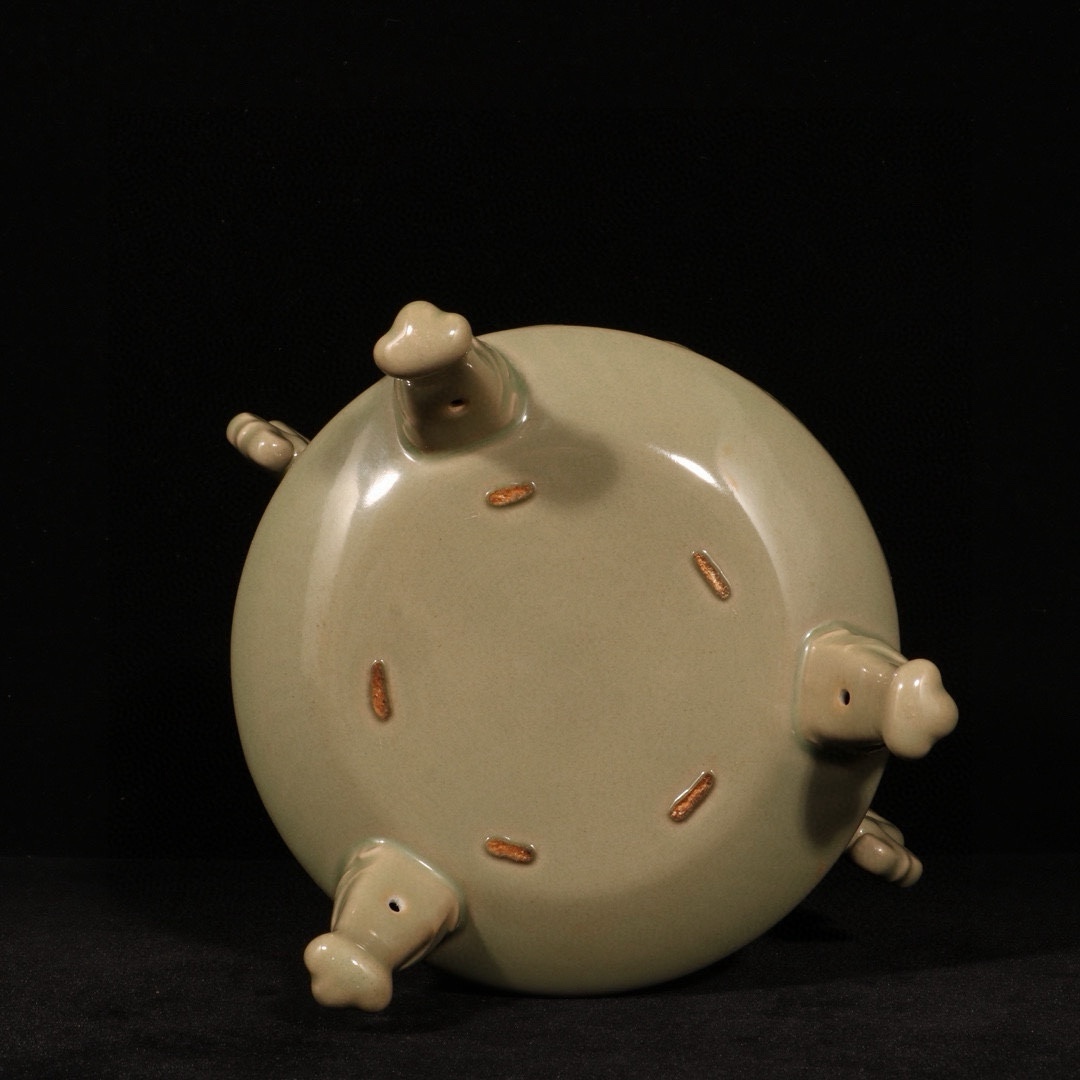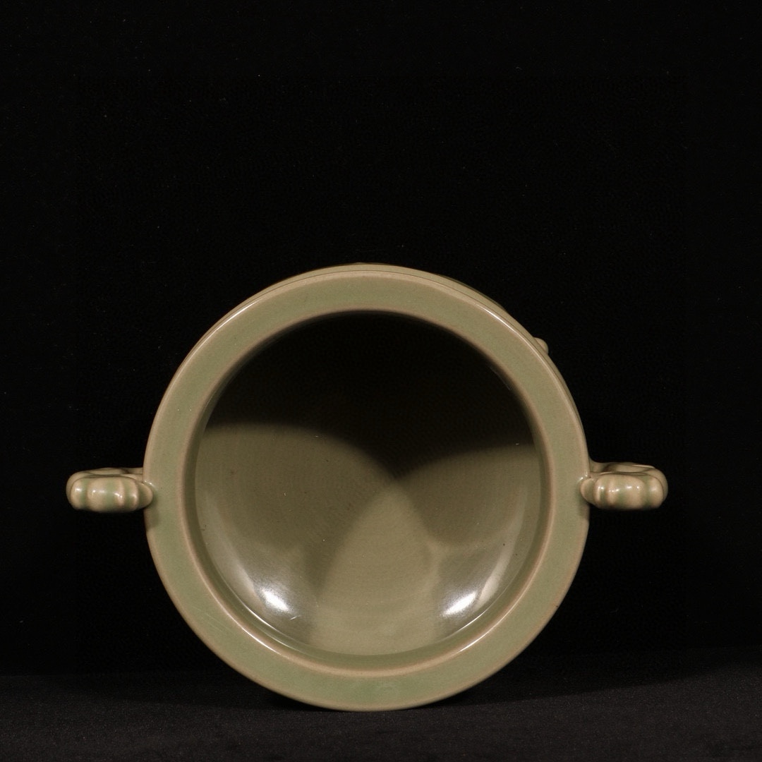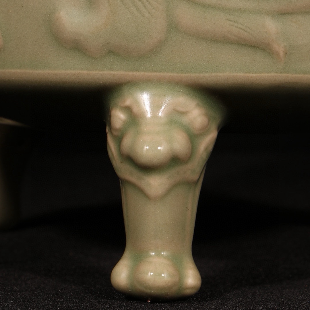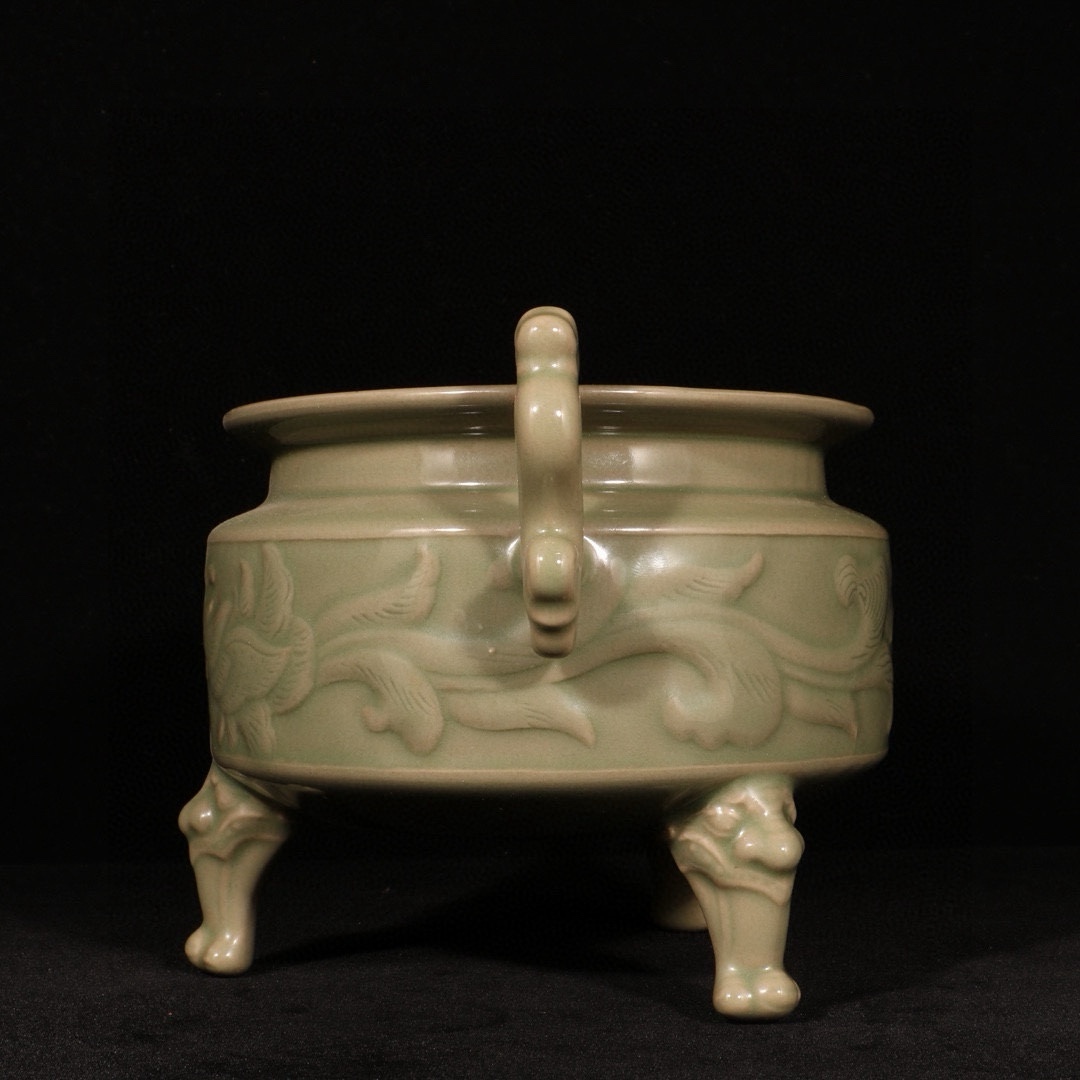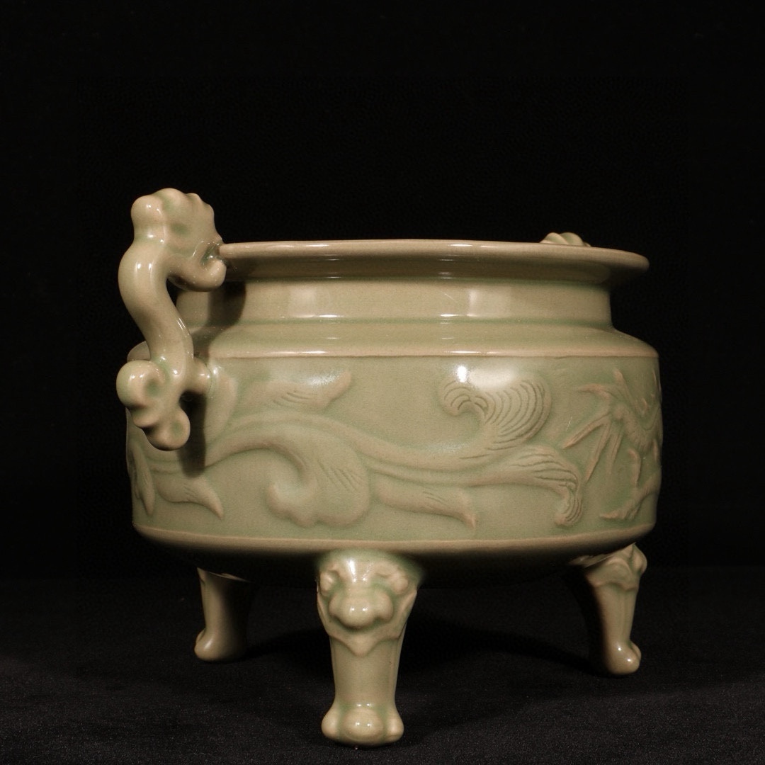 中国宋代 共箱付き 越窯 秘色青磁 龍鳳紋 双耳炉 時代物 陶磁器 中国美術 高さ13.5 cm 直径19 cm 骨董品 唐物 808