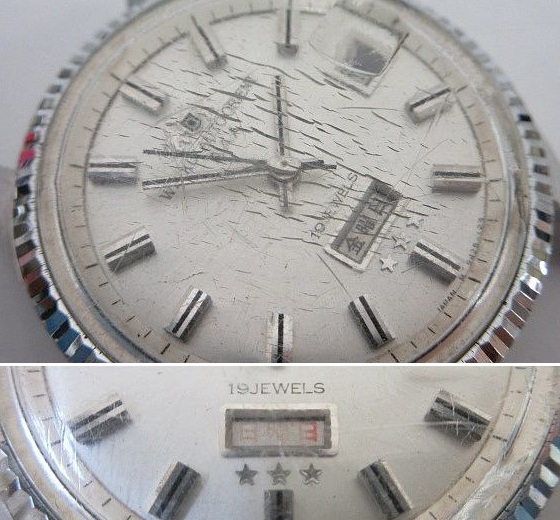 527☆WEEKLY AUTO ORIENT/ウィークリー オート オリエント AAA 19石 自動巻き デイデイト 腕時計 0104925AK フェイスのみ! 状態悪!