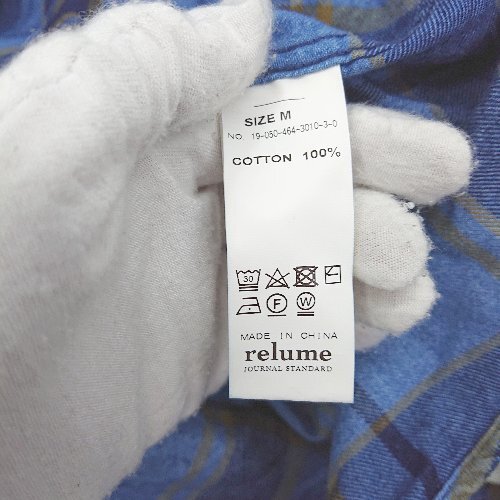 ◇ ⊇ JOURNAL STANDARD relume チェック柄 長袖 フランネルシャツ サイズM ブルー系 メンズ E