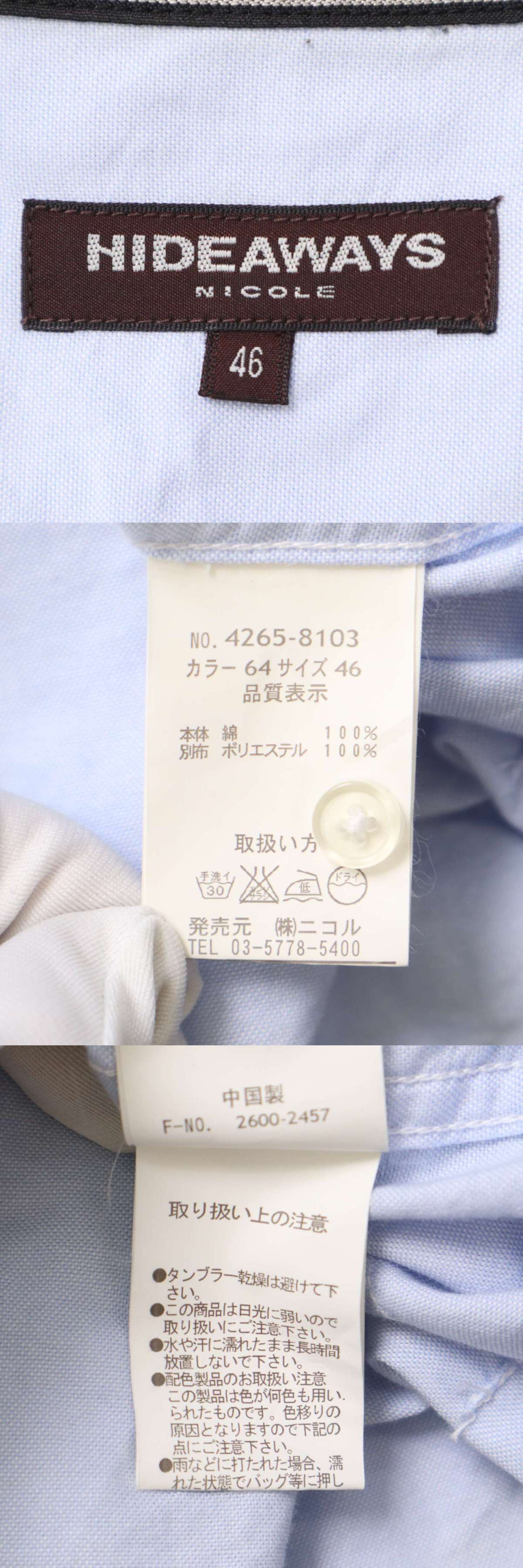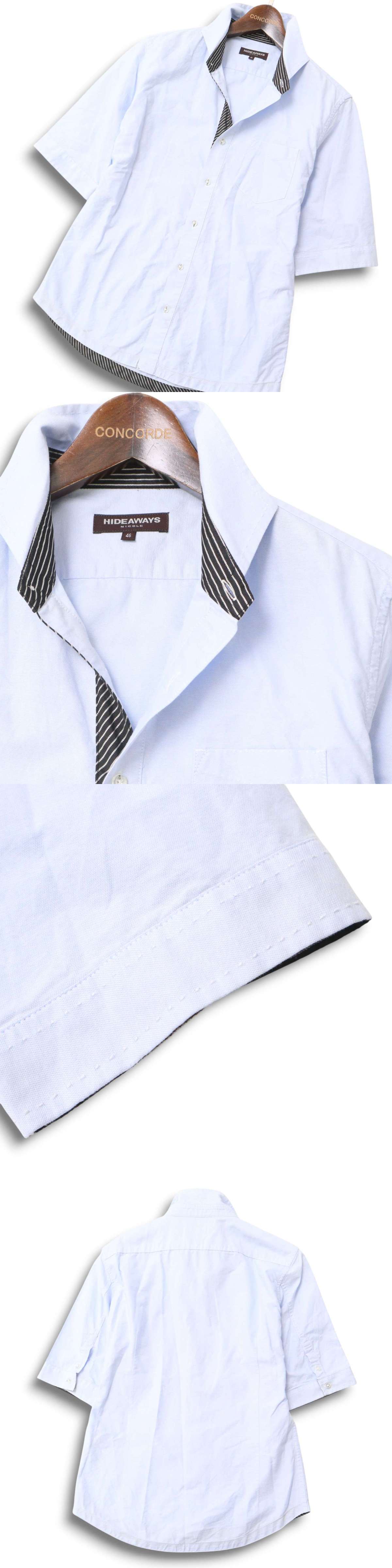 HIDEAWAYS NICOLE ハイダウェイ ニコル 春夏★ 半袖 襟ストライプ使い スリム シャツ Sz.46 メンズ