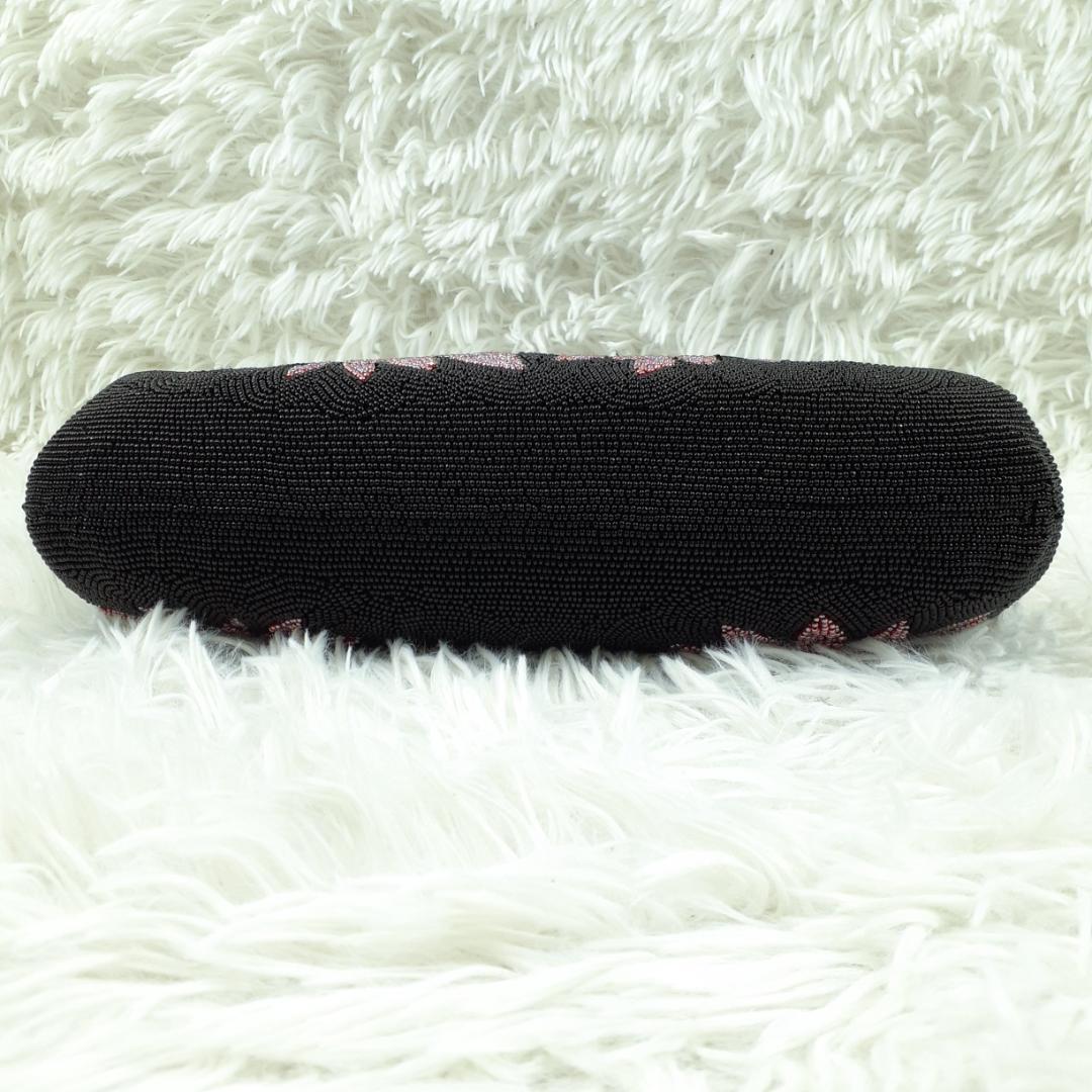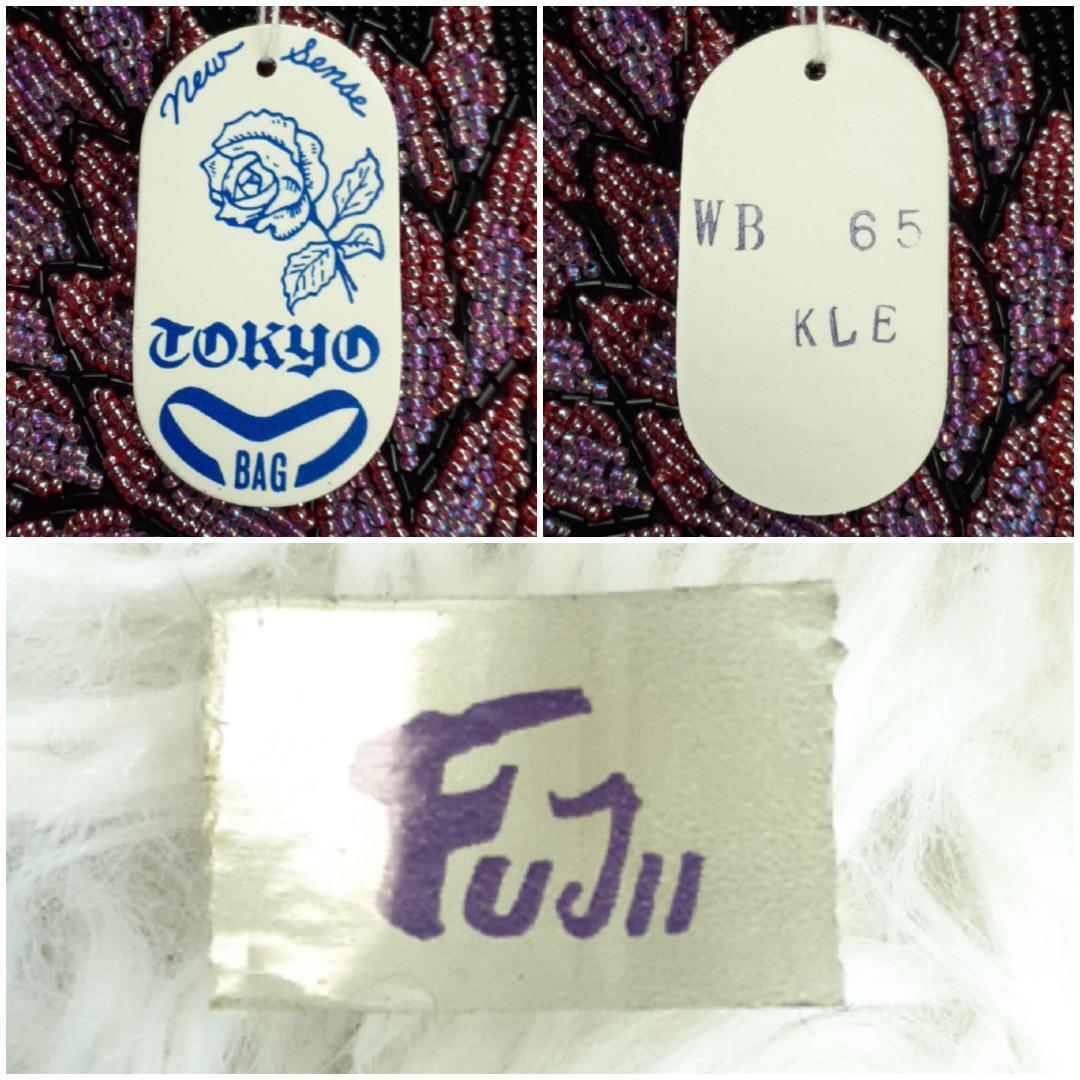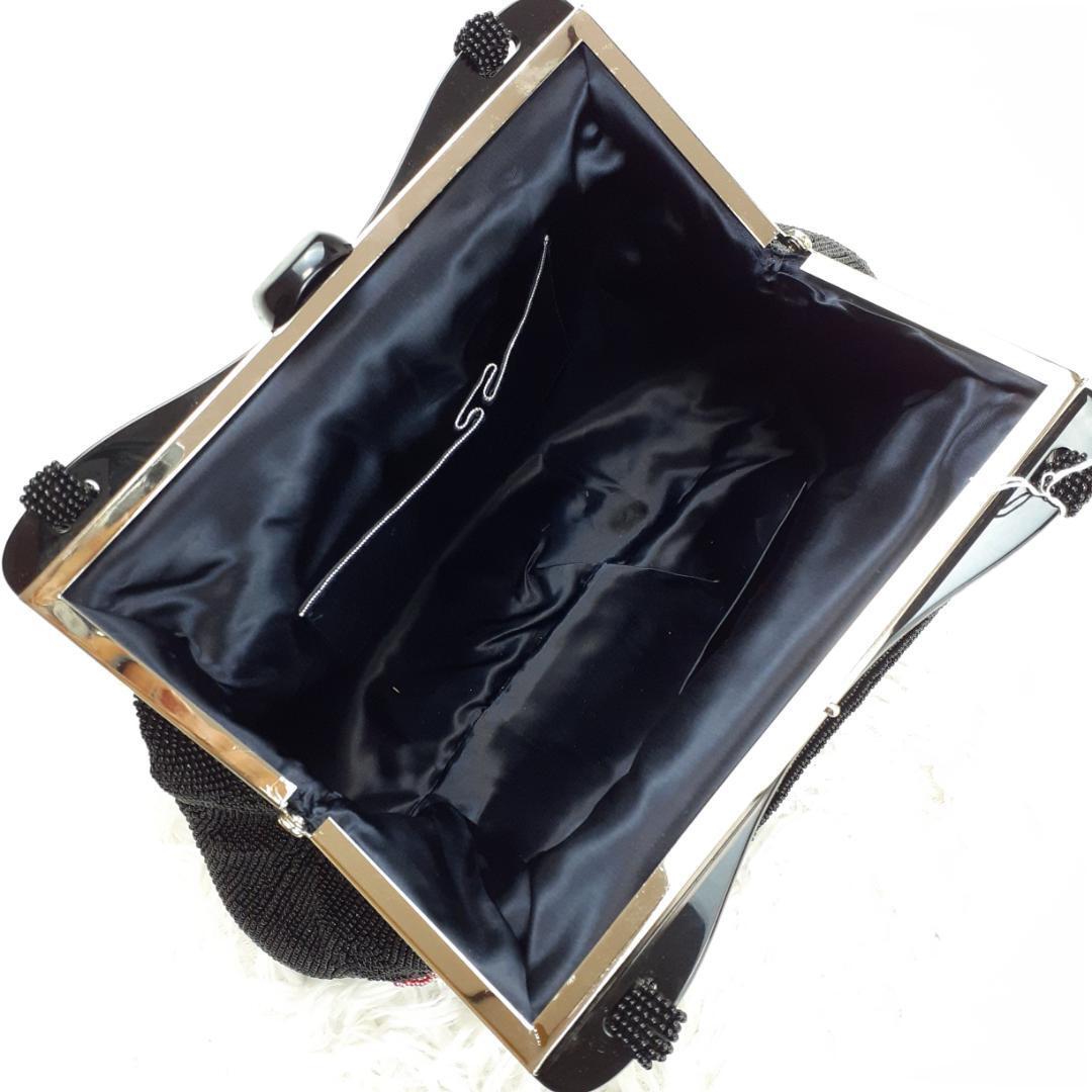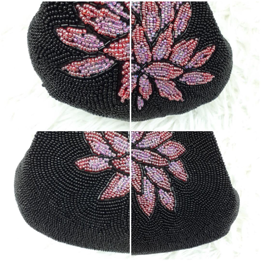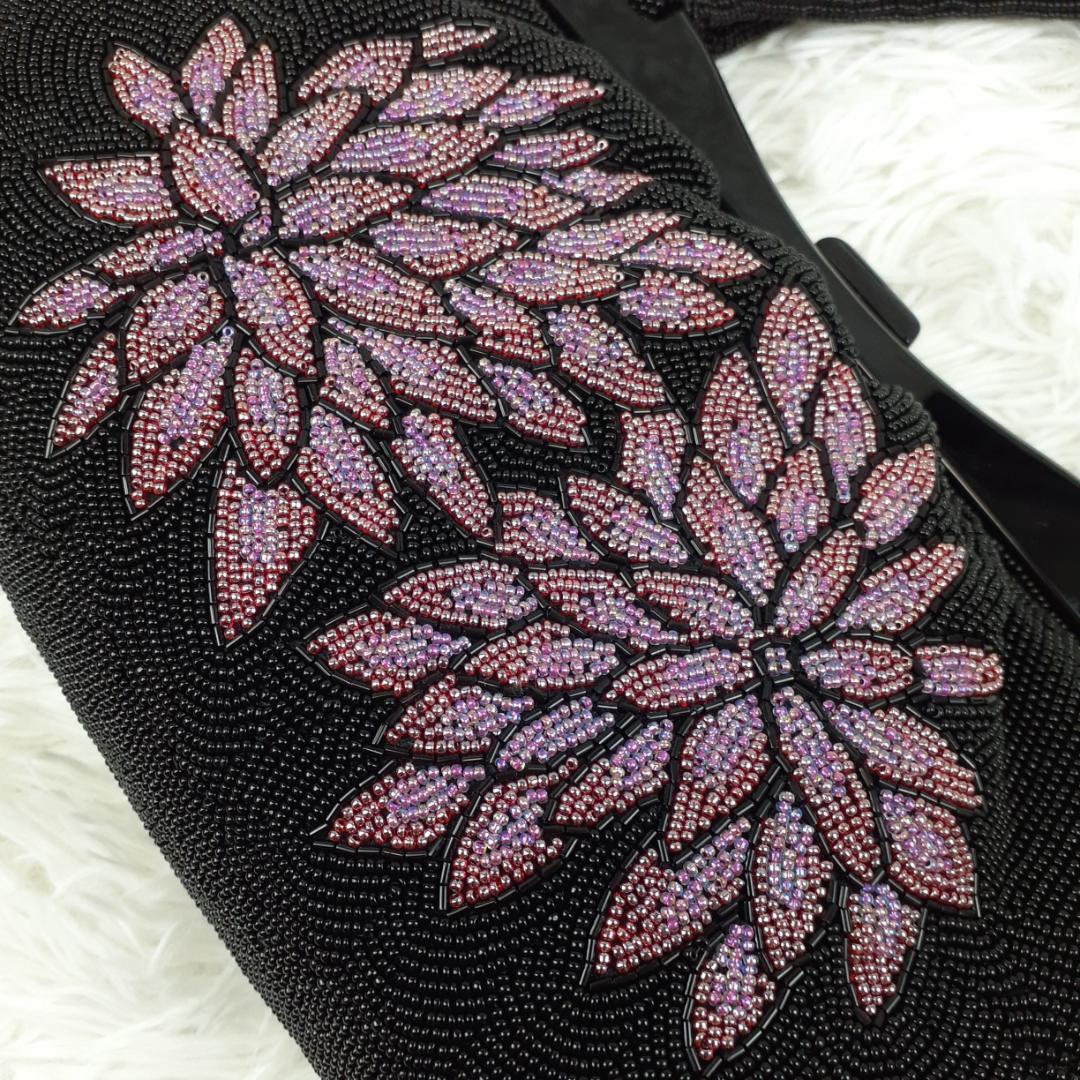 タグ付き未使用保管品◎ギンザワコウ 銀座和光 ハンドバッグ ビーズバッグ ブラック 黒 パープル 紫 総ビーズ 菊文様