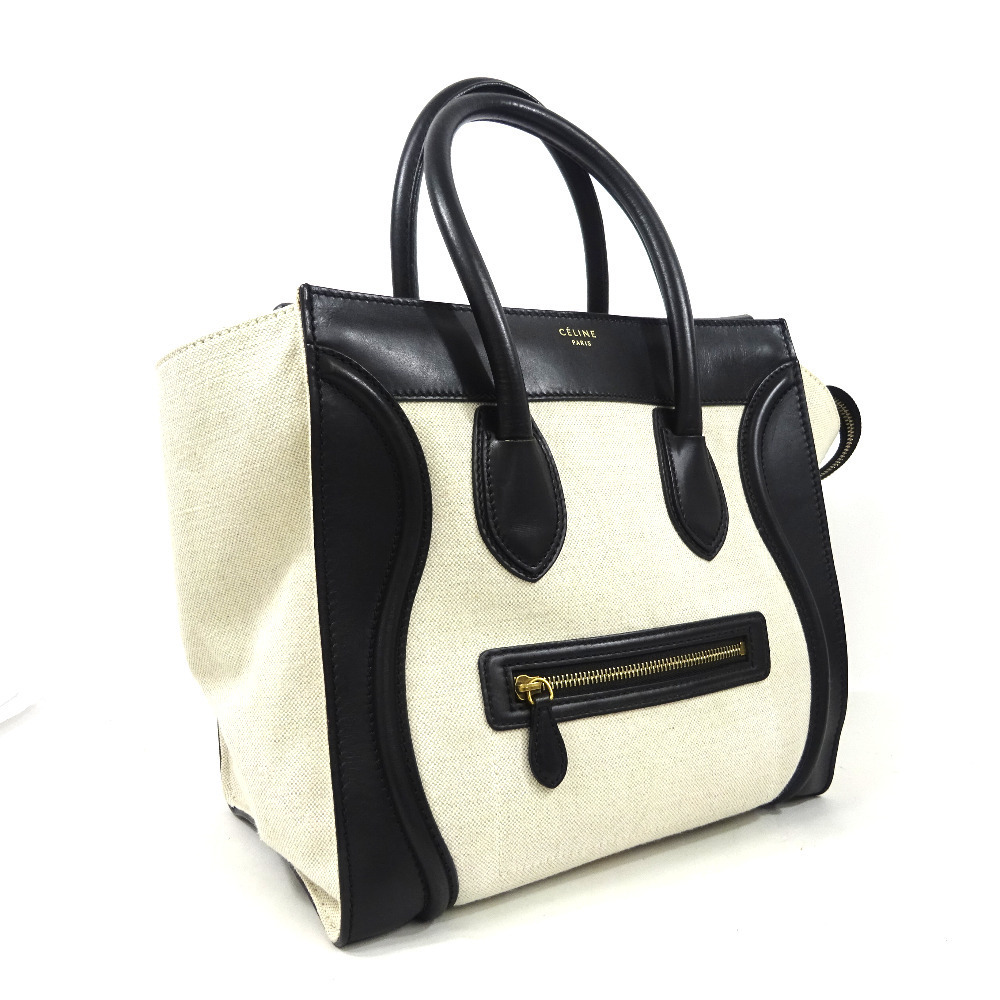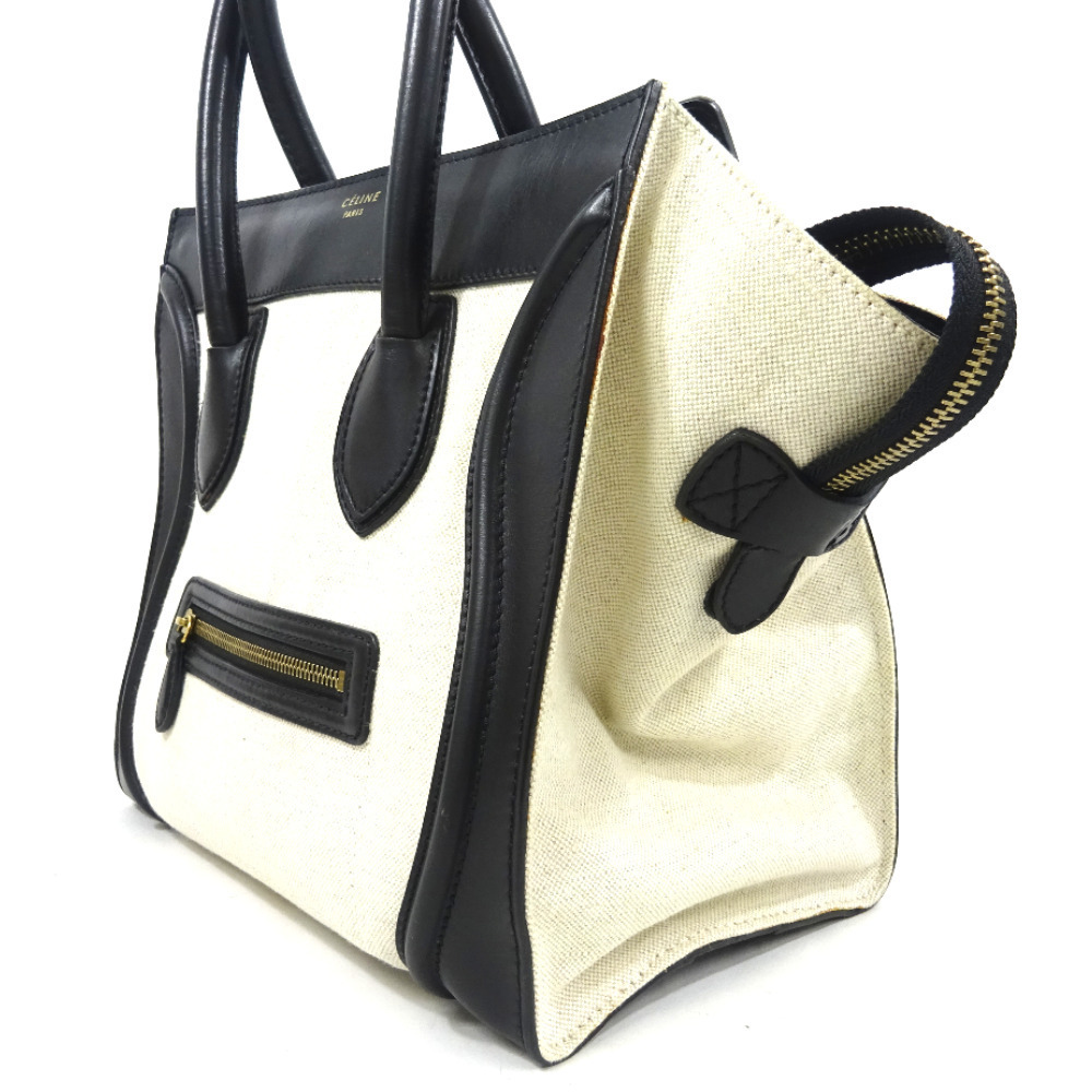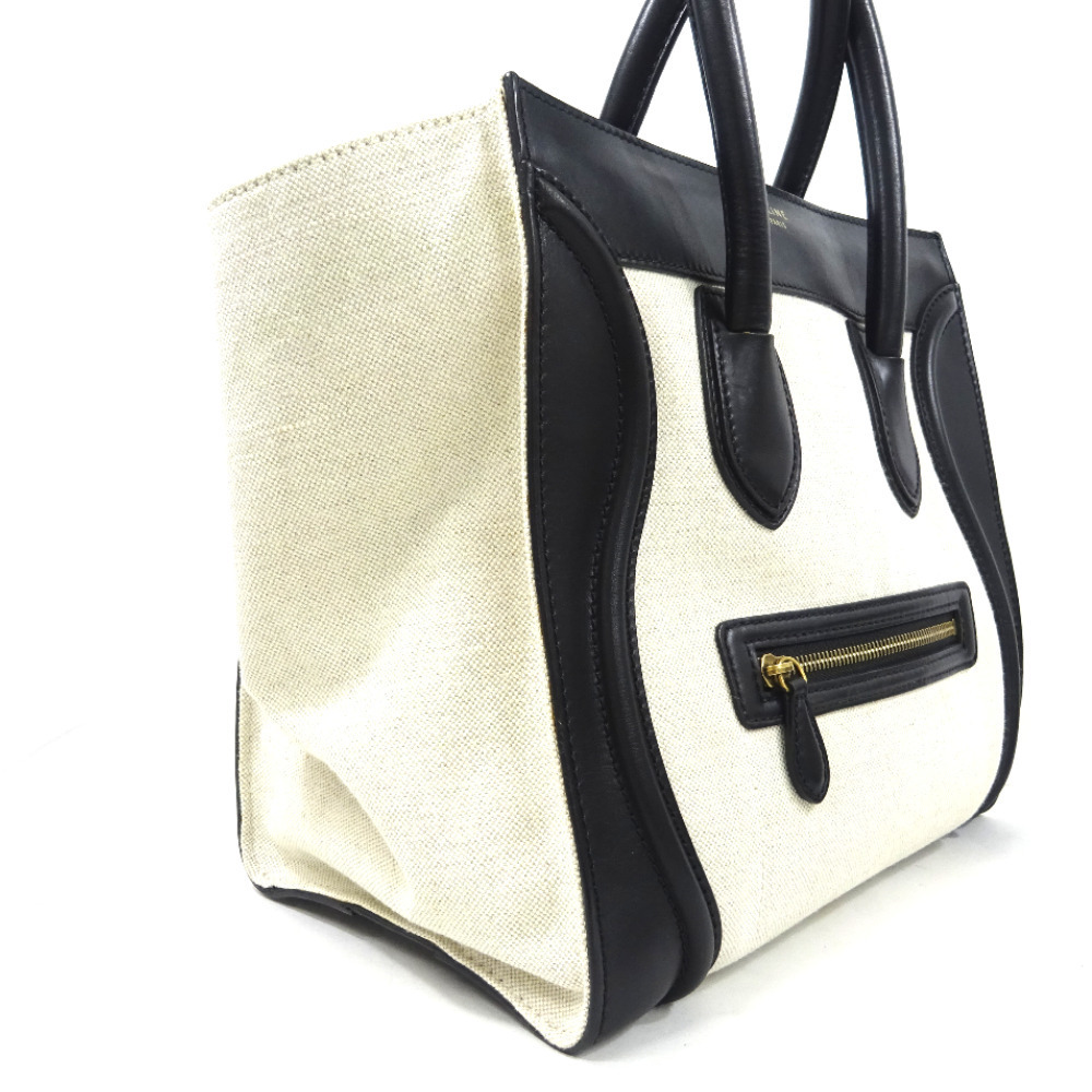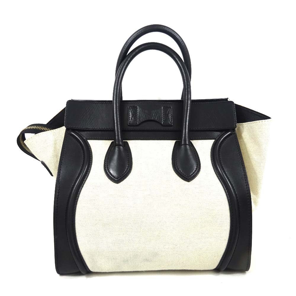 セリーヌ ラゲージ ミニショッパー ハンドバッグ レディース キャンバス レザー ブラック アイボリー 中古 送料無料 CELINE