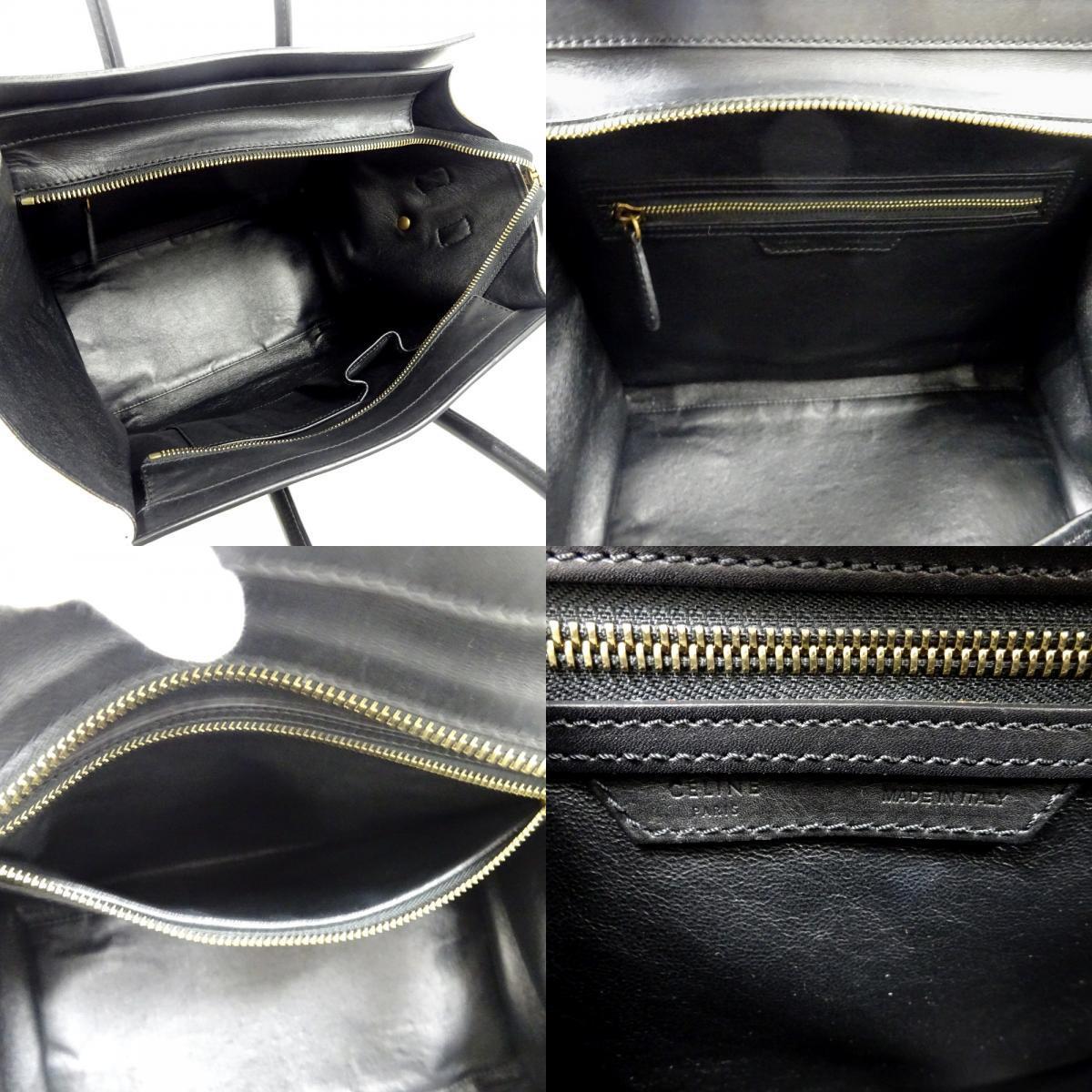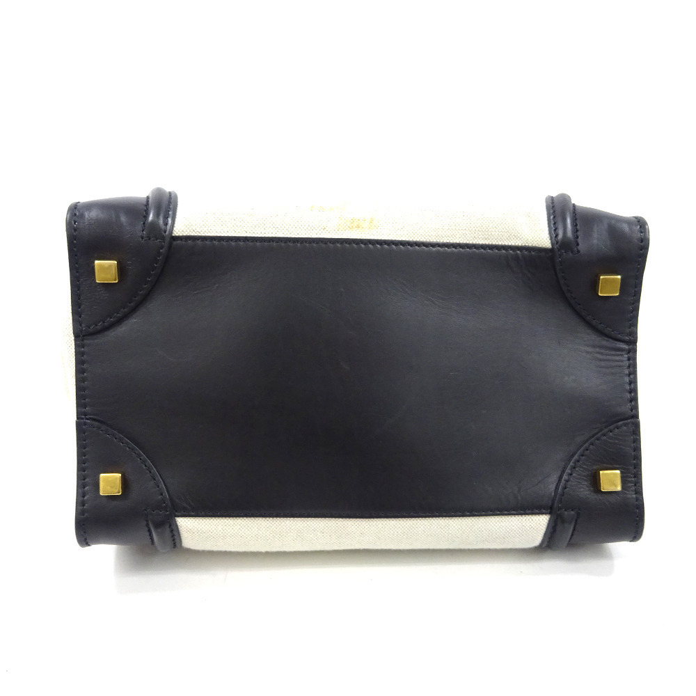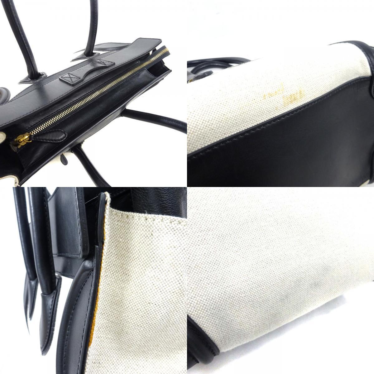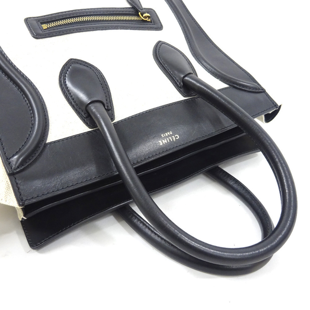 セリーヌ ラゲージ ミニショッパー ハンドバッグ レディース キャンバス レザー ブラック アイボリー 中古 送料無料 CELINE