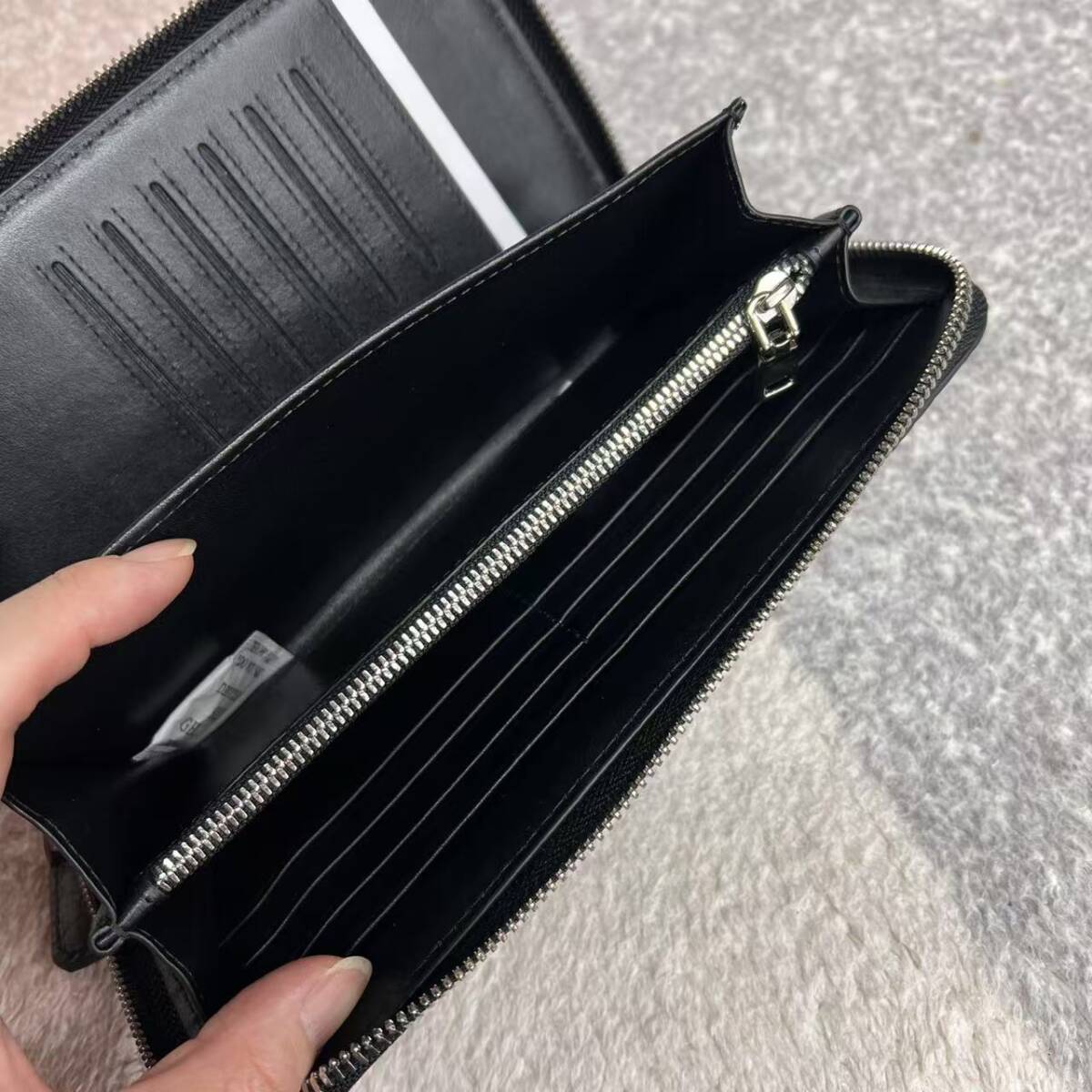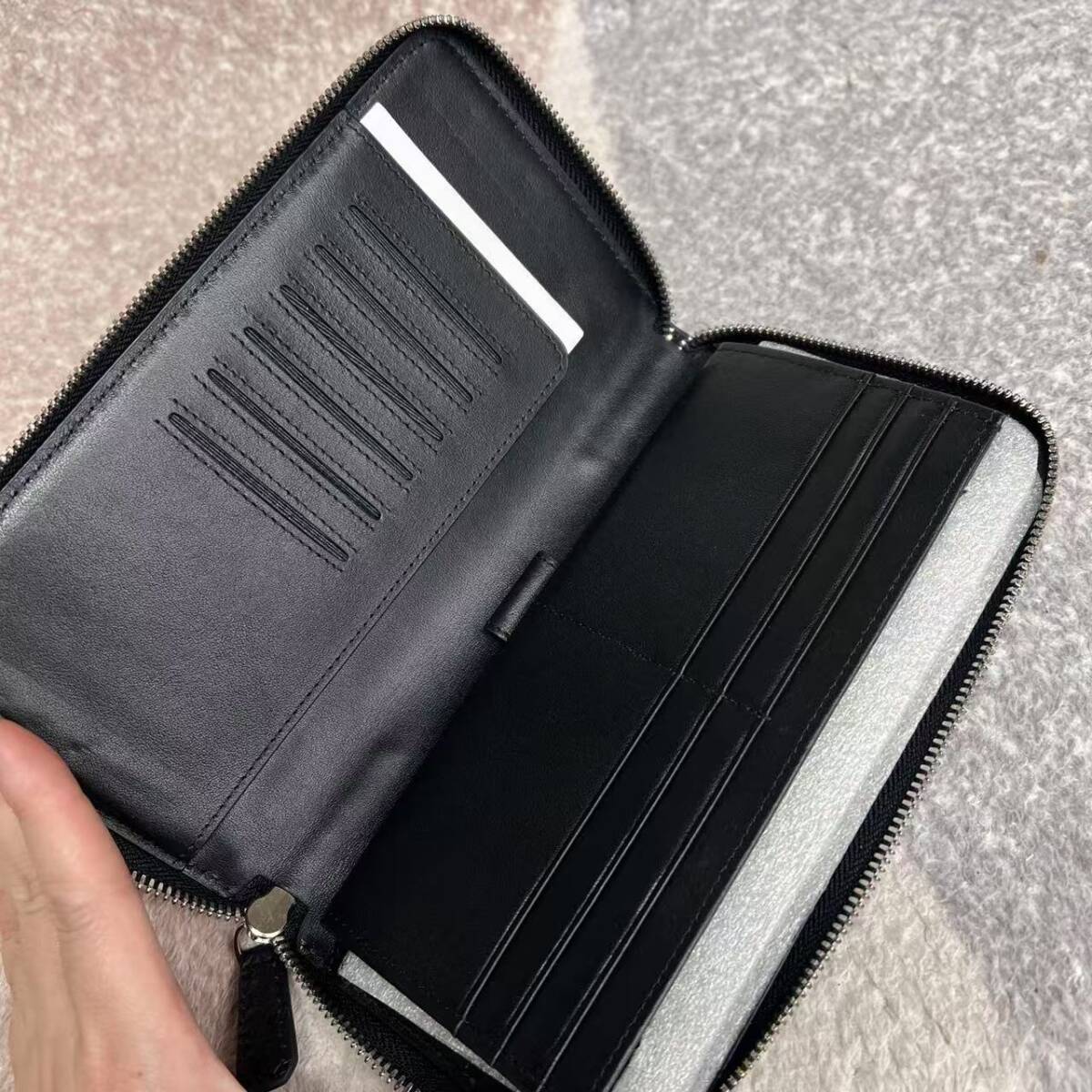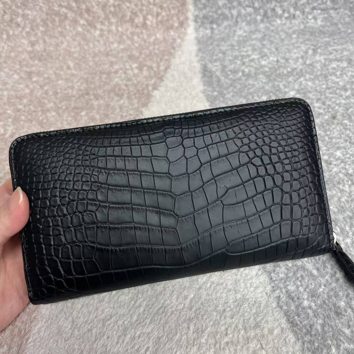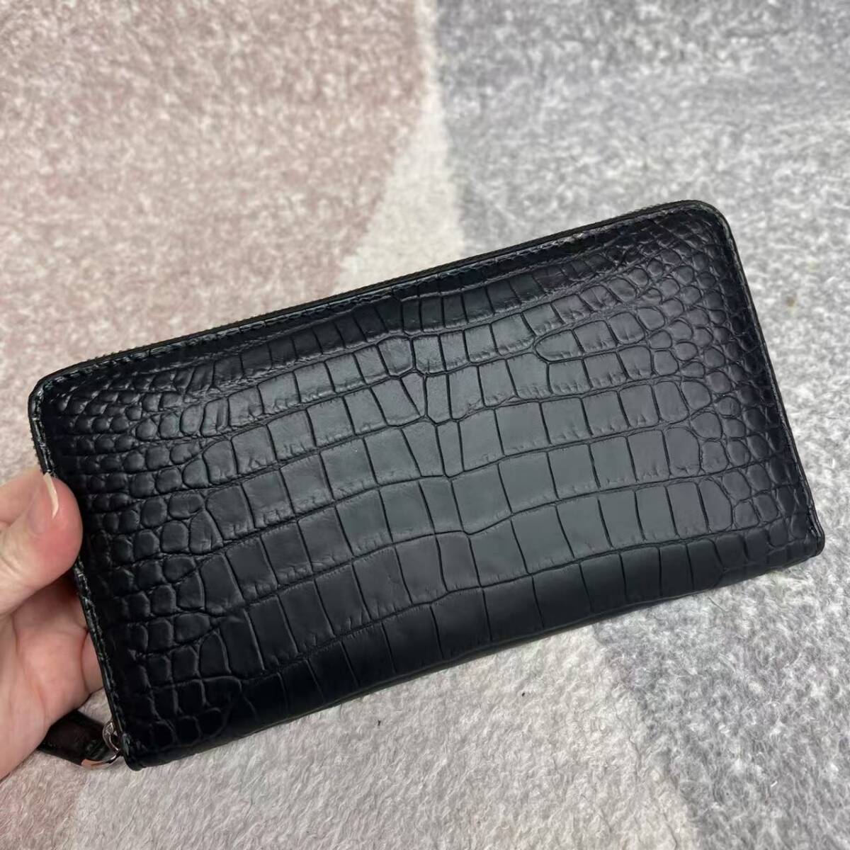 高級クロコダイル マット加工 丈夫なワニ革 銀色ファスナー メンズ長財布 ラウンドファスナーYKK 腹革センター取り 一枚革 黒