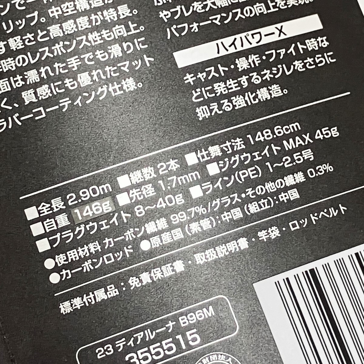 【商品名】中古 SHIMANO シマノ DIALUNA 23 ディアルーナ B96M 持ち手汚れあり 355515 ルアーロッド やや傷や汚れあり