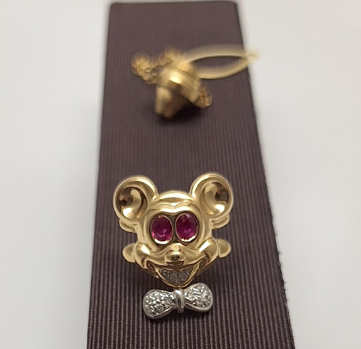 ◆98【T.B】◆K18YG/WG mouse:ダイヤモンド・ルビー・ユニセックス ブローチ
