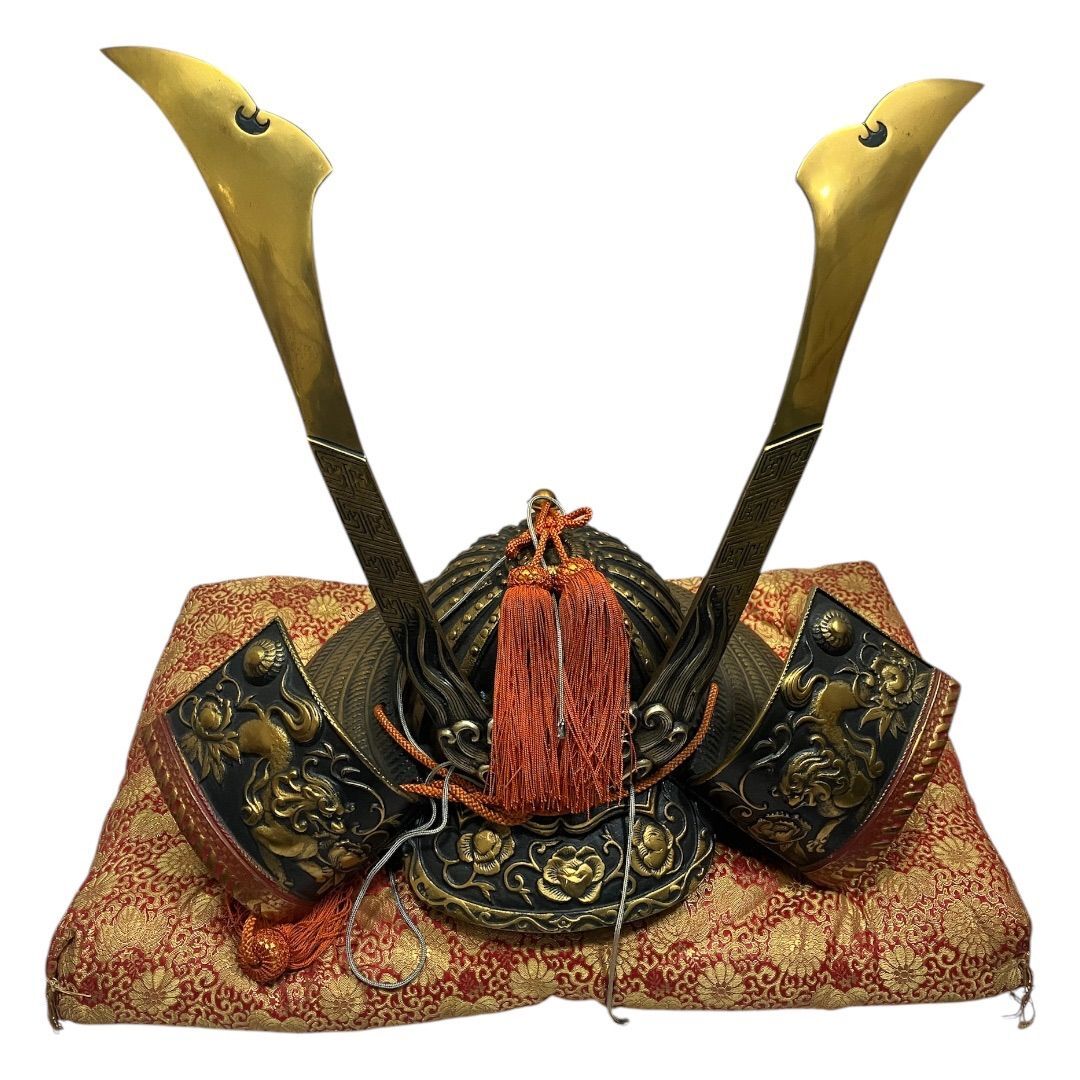 【美品】 特大 出世兜 端午の節句 座布団付き 骨董 子供の日 こどもの日