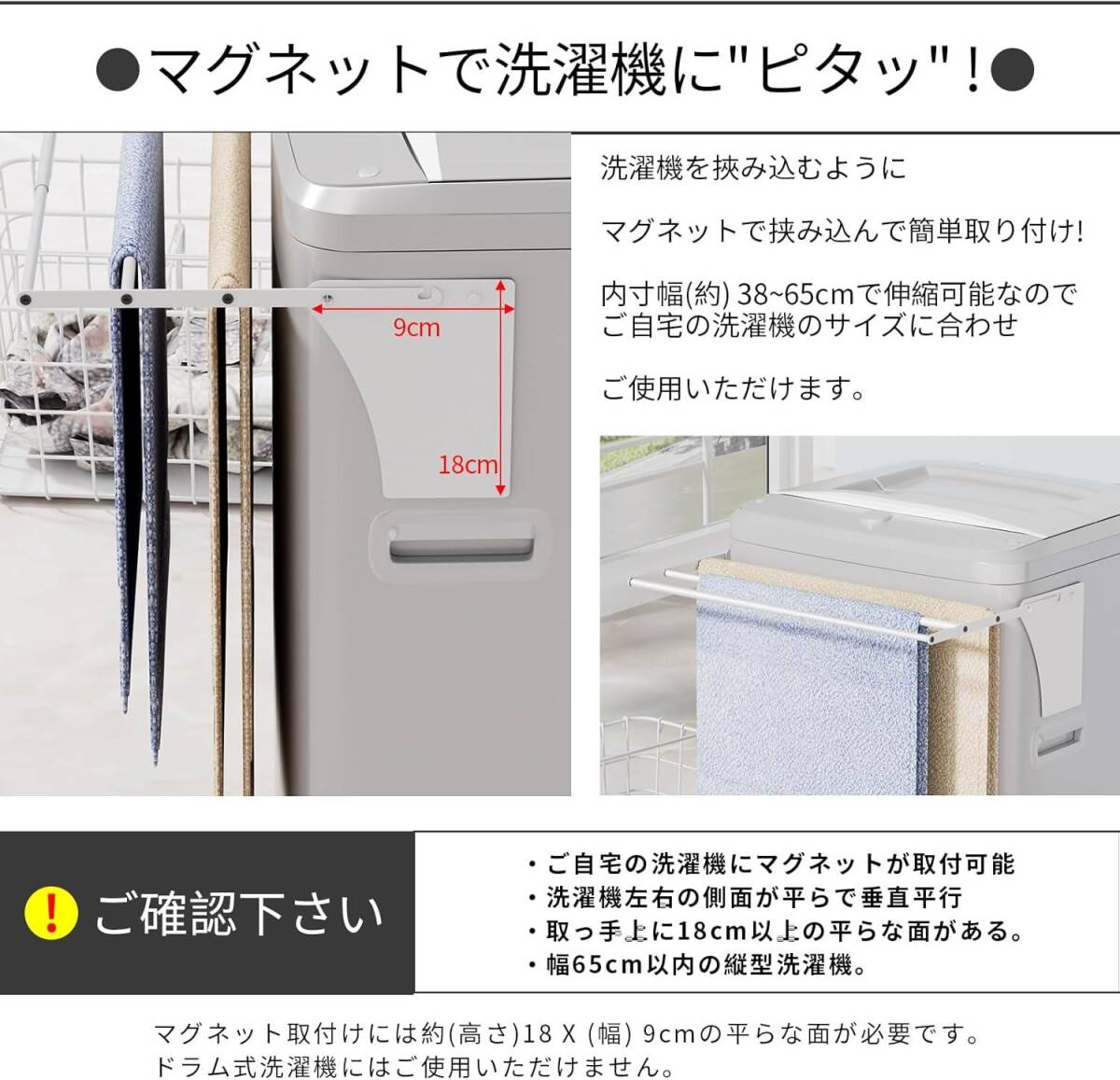 マグネットで洗濯機の両側面を挟むだけの簡単取り付け