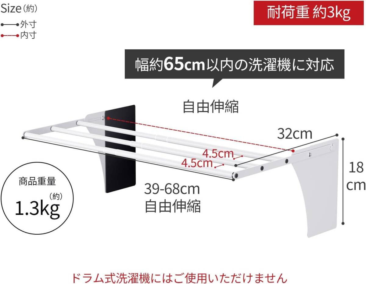 サイズ:幅40~65cm×奥行33cm×高さ19cm 内寸:幅約40cm~65cm(伸縮)