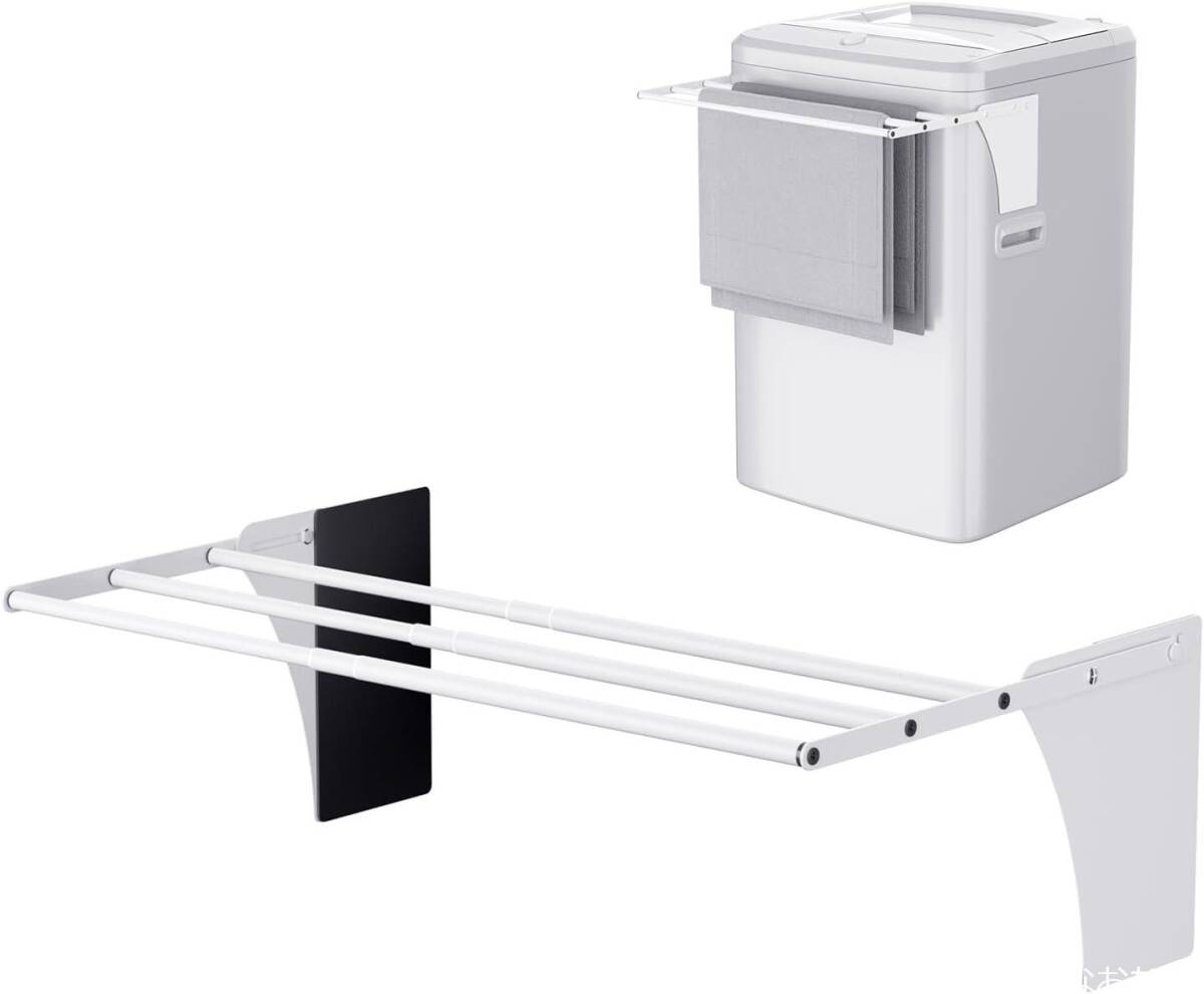 RCHYFEED マグネット伸縮洗濯機バスタオルハンガー プレート タオル掛け 置き棚 省スペースラック 折り畳み式