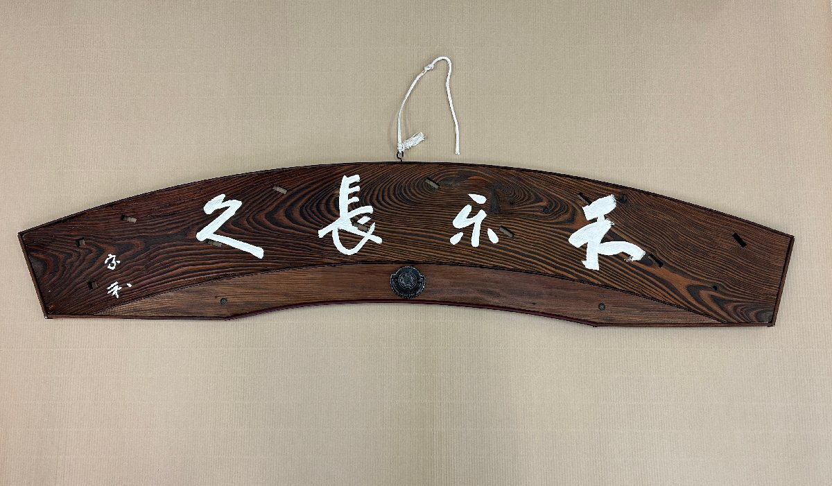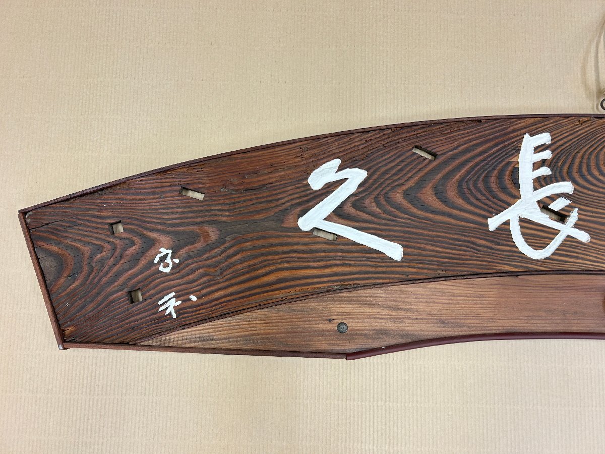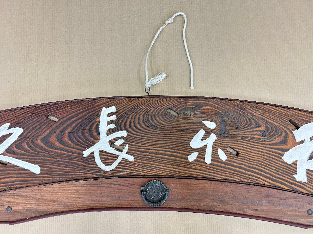 | ■商品名:黒住教 黒住宗和 扁額 看板 木製 ■サイズ:全長 約147.5cm 高さ 約28cm 奥行 約1.5cm ※出品商品は画像に写るものが全てとなります。 ※ハンガーやスタンド等、当店の備品を用いて撮影を行う場合がございますが、備品は付属いたしません。 | ||