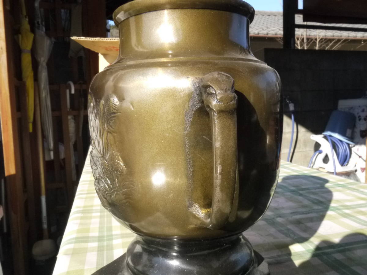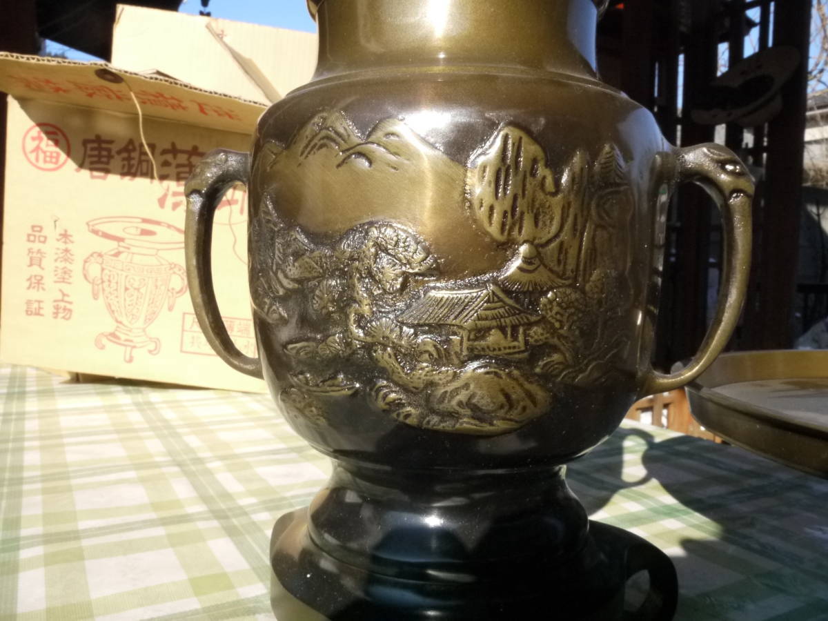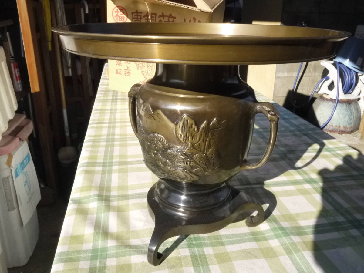 ★【TS30106】未使用 薄端 共耳新山水 三足 銅花器 唐銅 池坊 茶道具 華道具 フラワーベース インテリア