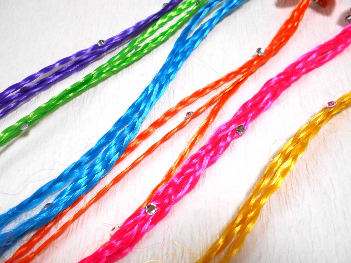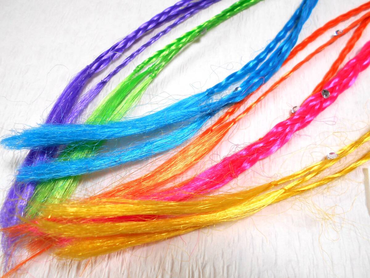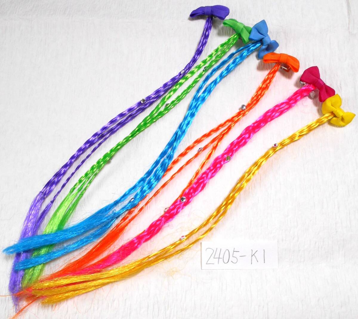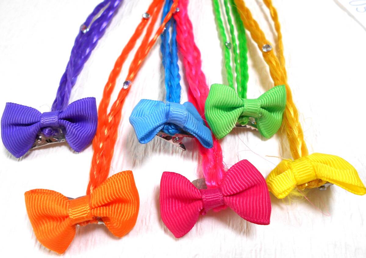 黄、紫、柿色、水色、ローズ、黄緑のリボンのクリップのついた飾りです。