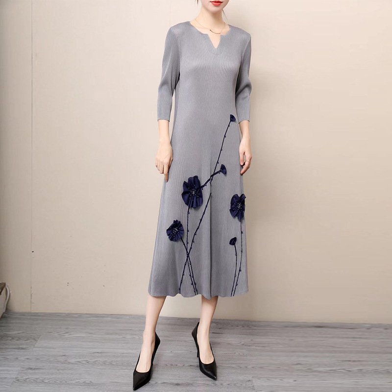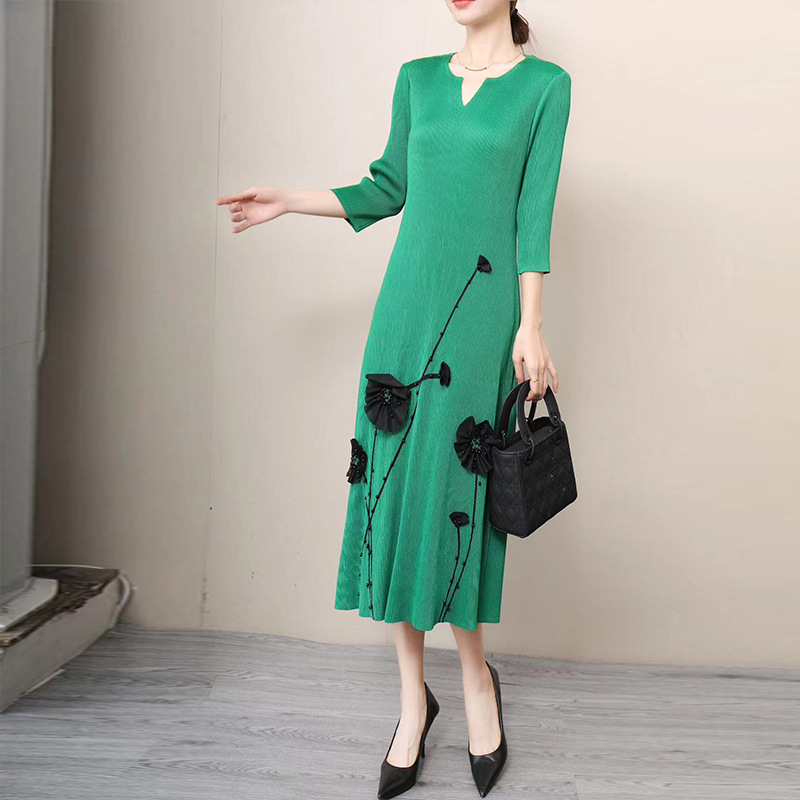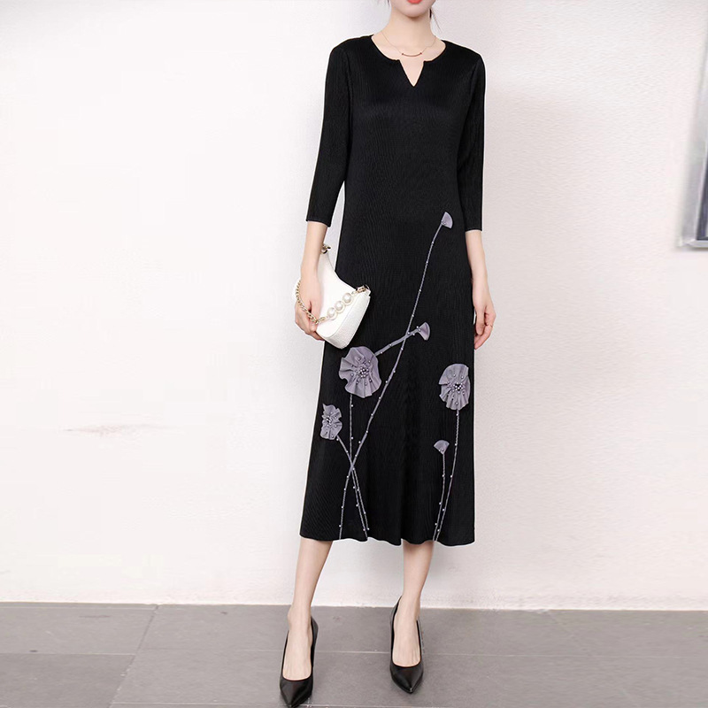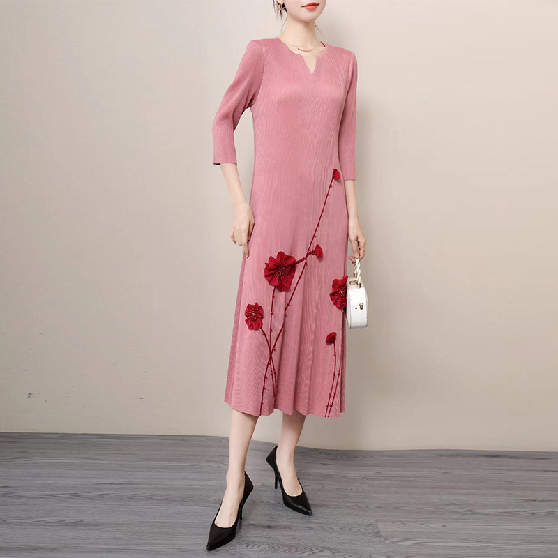 同梱1万円送料無料レディーストップスプリーツ7分袖丈ワンピースロング丈チュニックドレープ性いい弾力があり肌触りいい素敵立体花柄