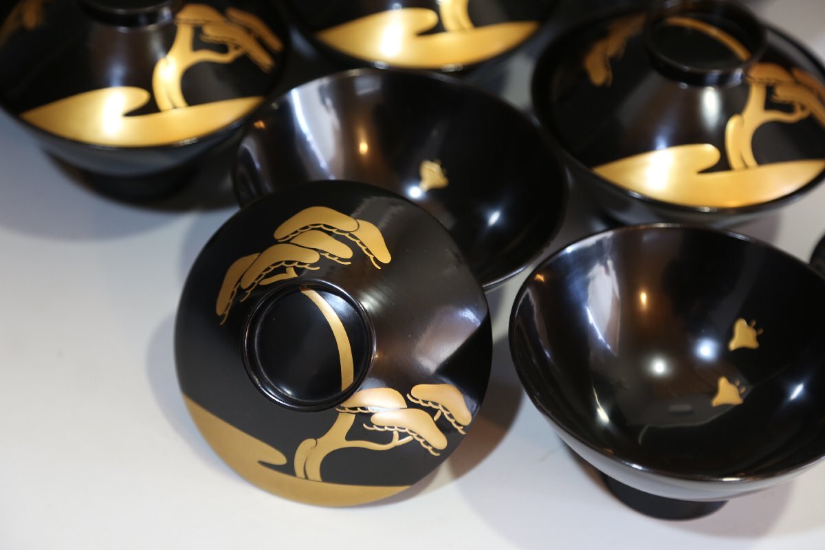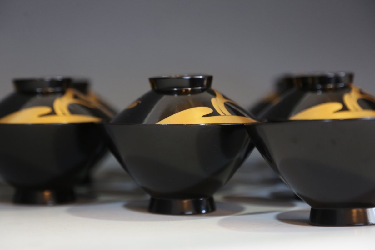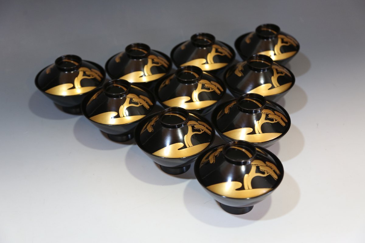 ★★★ アンティーク 木製 松に千鳥蒔絵 吸物椀 10客 ① ★★★ 66